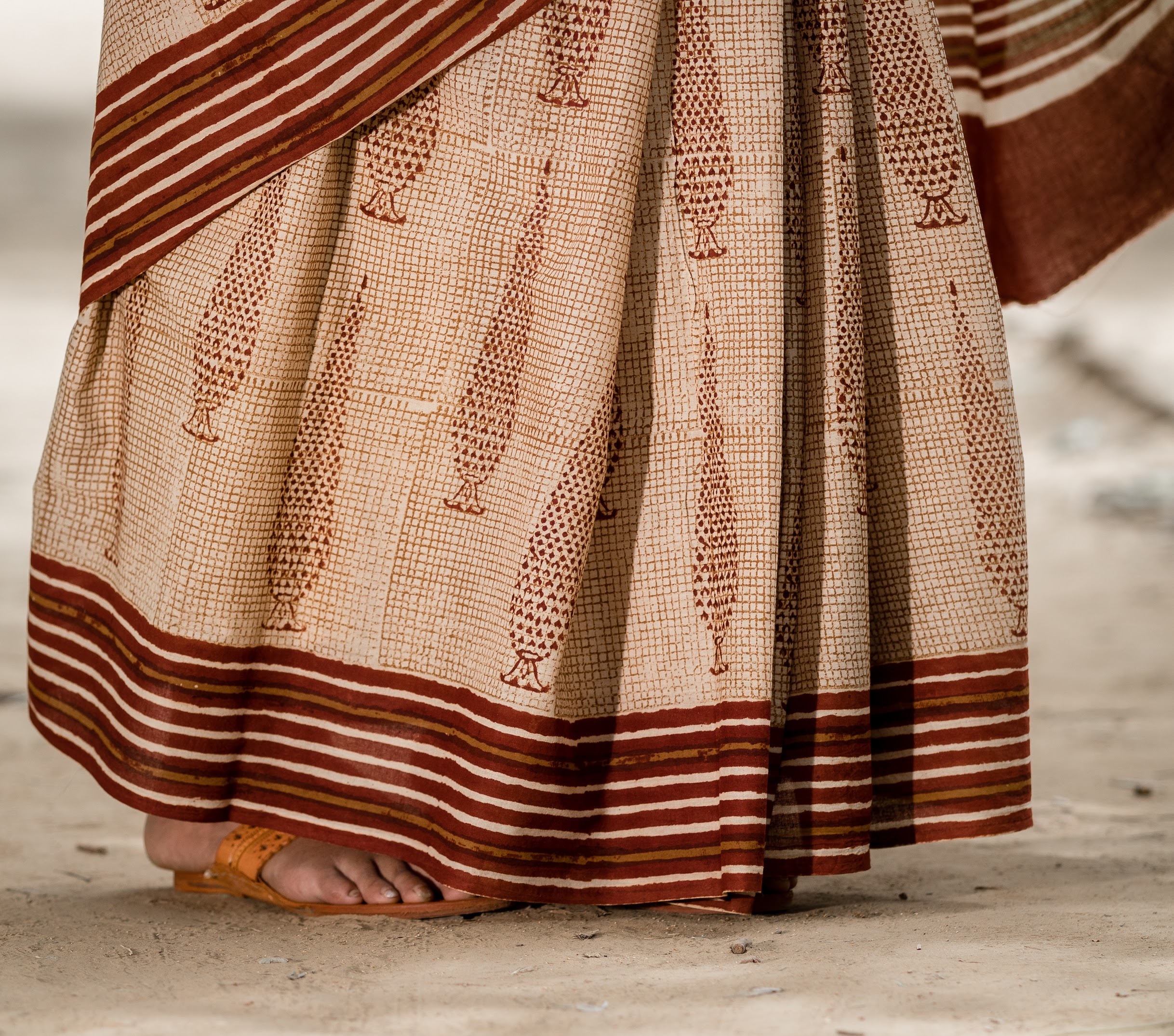 Bagru is a small township in the district of Jaipur, Rajasthan. It is famous for its ‘signature’ in the field of block printing and natural dyes. The livelihood of the majority is artisanship. Bagru says the story of two communities, Chhipa and Raiger, who were involved in block Bagru printing and manufacturing of leather respectively.