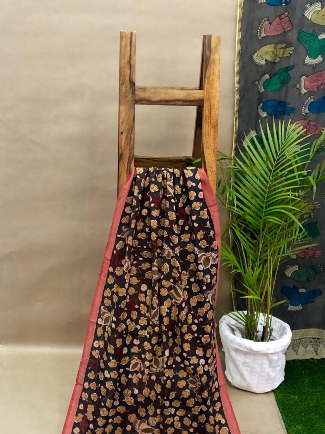 The process of Kalamkari is very slow and lengthy. It involves more than twenty steps from RFD to mordanting and making of natural colors etc..The place of Pen-Kalamkari in the market is very high in demand. It nurtures many artisan families. We should try to