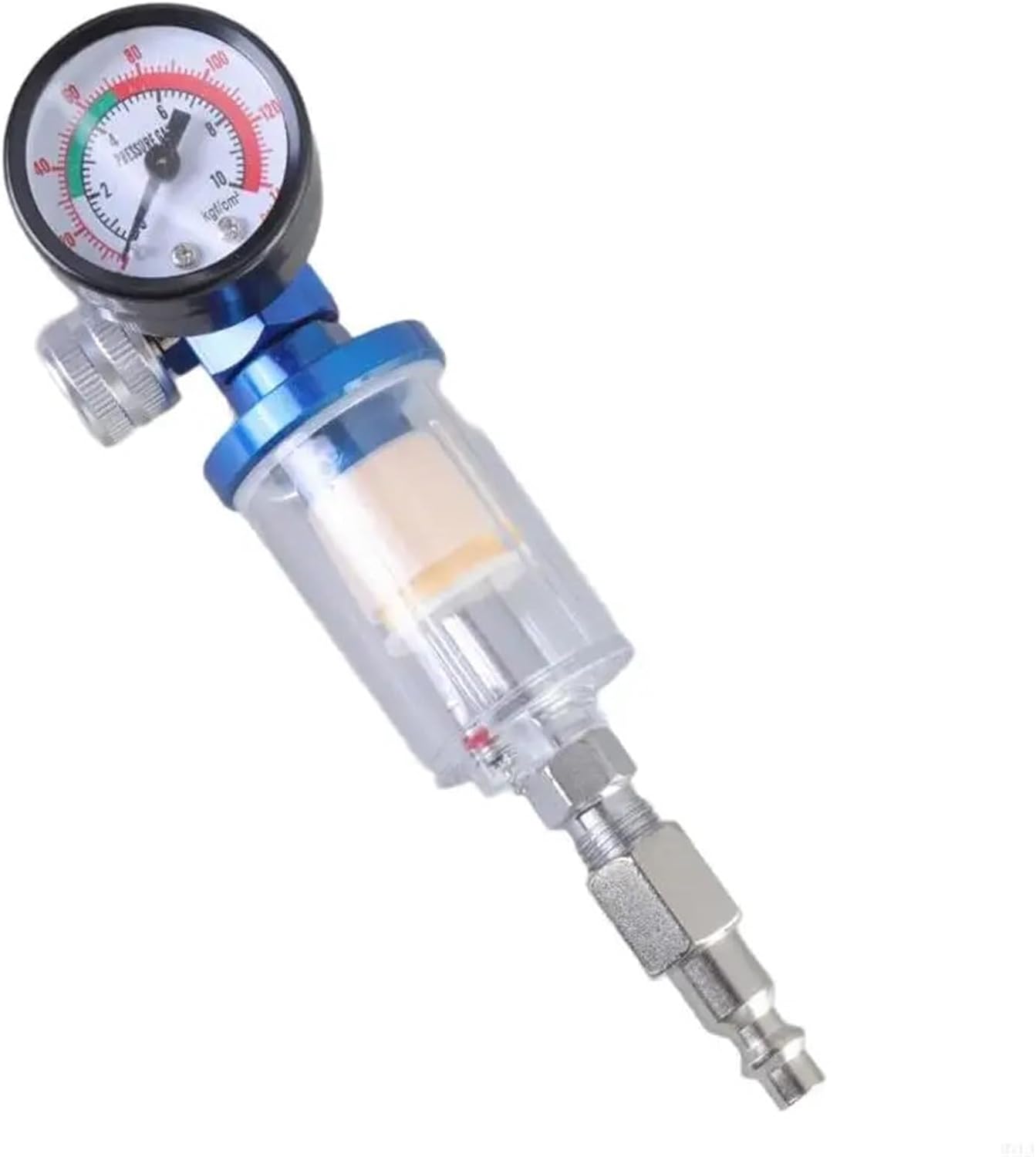 FiltersEnhances your air compressor system with our 1/4" Air Compressor Oil Water Separator, designs to ensure Best Performances and extend the life of your Sprays Tool and other pneumatic toolFeaturing a robusts construction from ABS , this set includes air pressure regulator, in lines water filter, and thread sealing tape for precise pressure control and effective filtrationsSuitable for industrial equipment operators, mechanical maintenance personnel, and DIY enthusiasts who require reliable and efficient air tool Performances.Perfect for use in automotive refinishing, projects, construction site , carpentry workshops, and home studios, providing clean and consistent compresses air supplies.With its easy to use build in button drain Valves, maintain your air tool effortlessly by removing water, oil, and dirt, ensuring smooth operation and result each timeSpecifications:Material: ABS joint: 40x10x16mmWater cell height: about 94mmsilver thread diameter: about 12mmBlue width: about 18mmBlue pressure regulator: dials diameter 42mmx60x52mmPackage Includes:1 set Air Compressor RegulatorNote:Please allow 1 to 3cm error due to manual measurement, please make sure you do not mind before you bid,Due to the differences between different monitors, the picture may not reflect the actual colorful of the item.==========Hign-concerned Chemical : None