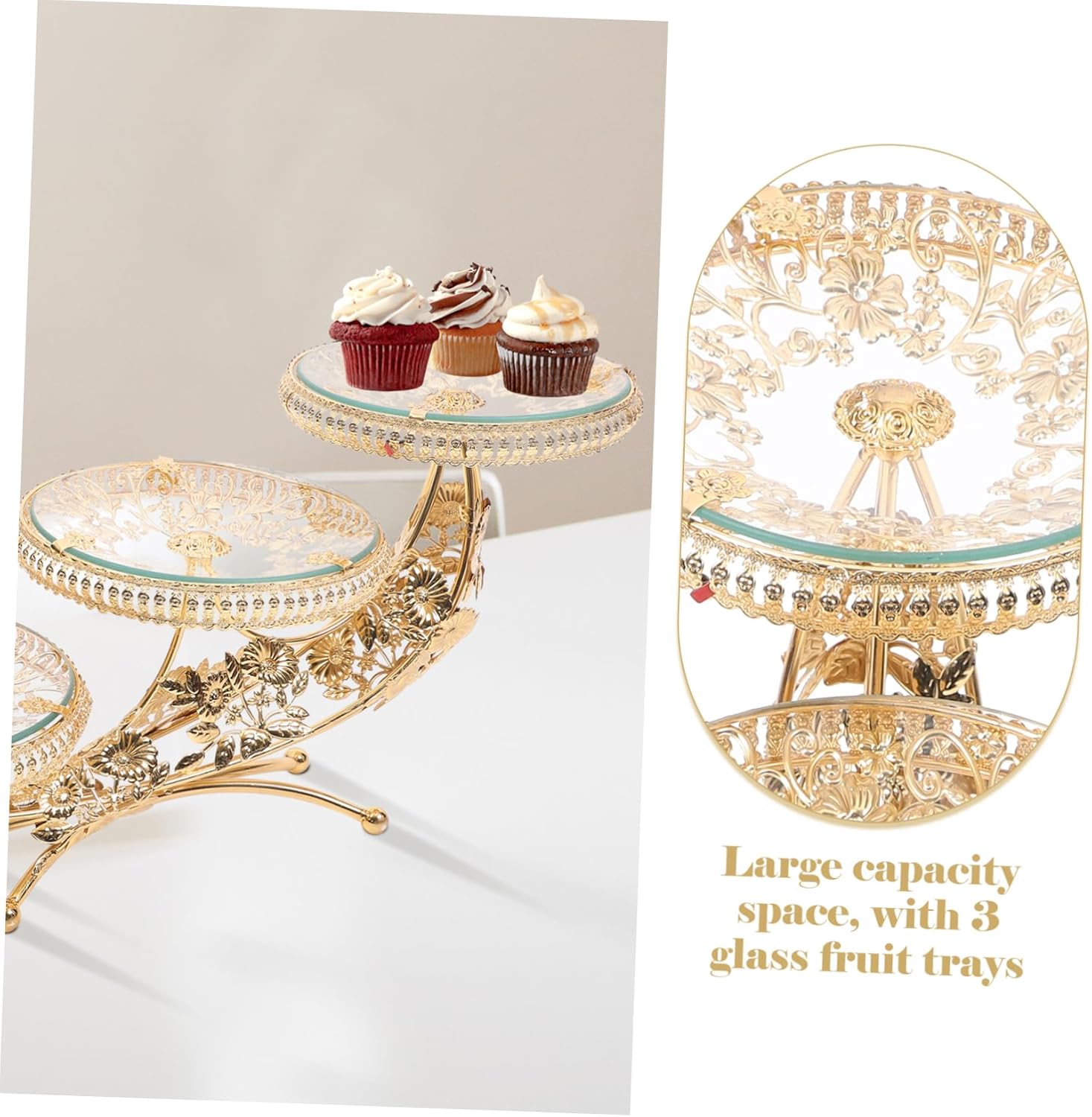 Package List 1 x glass tray Features - Size: 54.00X25.00X19.00cm/21.22X9.82X7.47in Glass Fruit Tray - Material: Glass and iron dessert platter. - Color: Golden Fruit Display - and unique, with aristocratic atmosphere, elegant style, very stylish and chic glass serving tray. - Versatility, can put fruits, snacks, can also be used as a decor Cake Appetizer Trays. - Suitable for weddings, hotels, living rooms, etc. with high ornamental and decorative value cake cover glass. - craftsmanship, carefully crafted, very and convenient to use long time glass cake - Unique and creative shape make this display rack more attractive and adorable Crystal Glass Tray.Goods InformationCupcake Holder Reasonable design for time use.Glass Fruit Tray Made of , and , more convenient to use.Candy Cake Tray Easy to clean and use, use.fruit display stand Are you still looking fruit display rack for your home? , ! Our product will be the for you