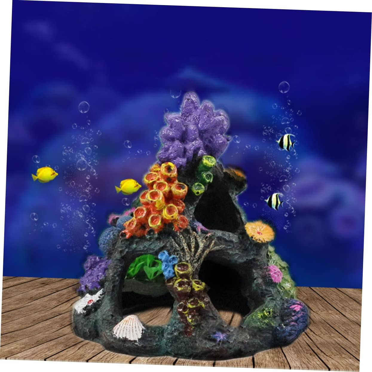 Package List 2 x Tank Ornament Characteristics -Color:As Shown lifelike coral statue -Size:13.50X13.50X16.00cm/5.31X5.31X6.29in aquarium adorn -Material:Resin fish shelter - It has the advantages of no deformation, no fading, and constant preservation as new aquarium hideout stone. - Owning the and break resistance ability. It can be placed steadily and not easy to fall and overturn underwater craft. - Small and lightweight, easy to store, this simulation coral ornament is not taking up any space simulated coral. - Artificial coral decoration, well help create a beautiful scenery for your large fish tank coral figurine. - Use it to change the old style of your aquarium. It can make the aquarium space more refreshing resin craft for fish tank. Goods Description tank hideout stone Adds some color and beauty to any fish tank.fish shelter It doesn't harm your fish, shrimp or create any bad impact on water condition.hideout place Suit for freshwater and saltwater.tank hiding mountain Realistic modeling make it become a decoration for your fish tank
