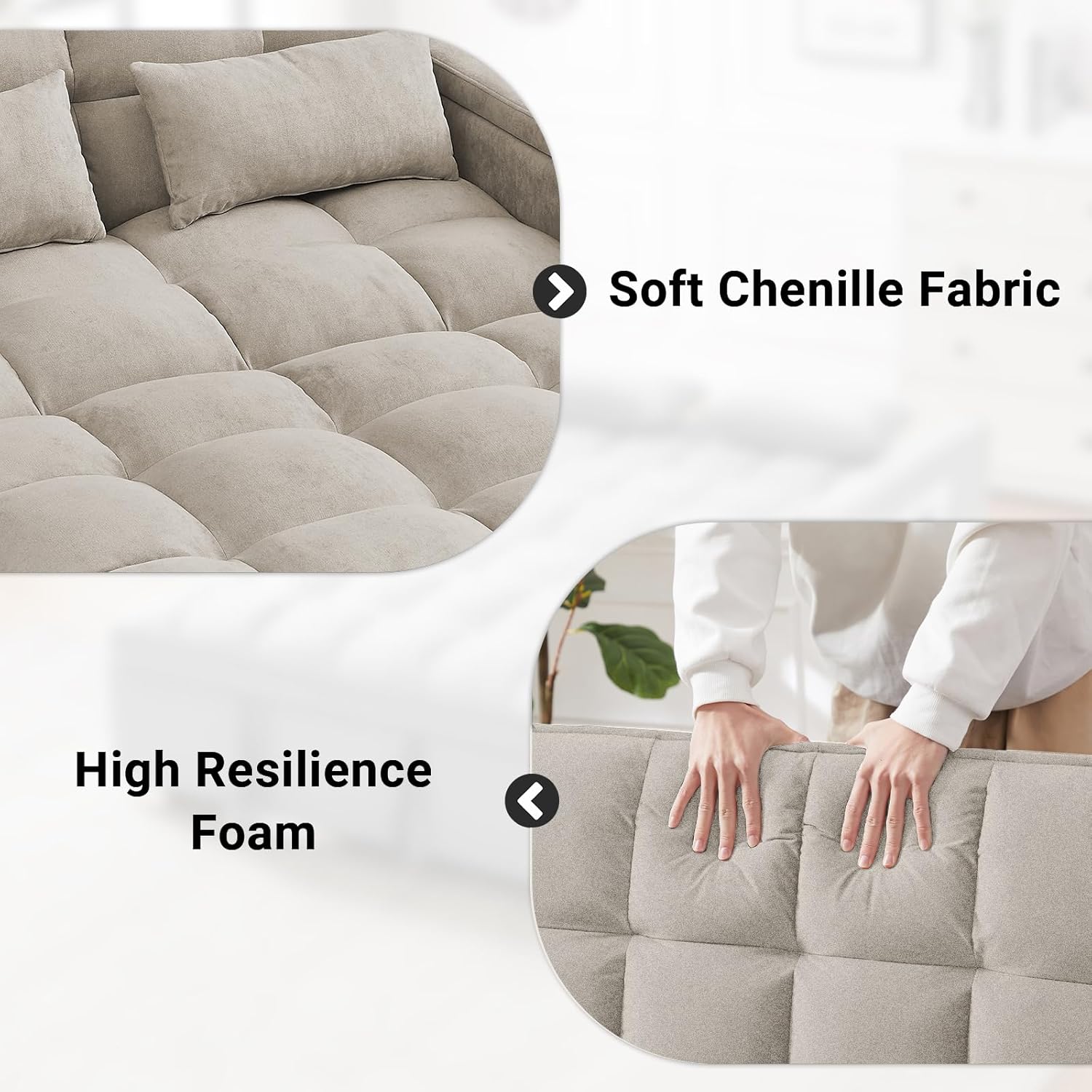Transform Your Space with the Pull Out Couch BedThis versatile sofa bed blends comfort, function, and style. Whether for a studio, apartment, or guest room, it's the lovely choice.Product SpecificationsMaterial: chenille fabric, WoodColor: KhakiAdjustable Backrest Angles: 110° / 150° / 180°Weight Capacity: 500 lbsDimensions: 65.35"L x 29.92"W x 37"H