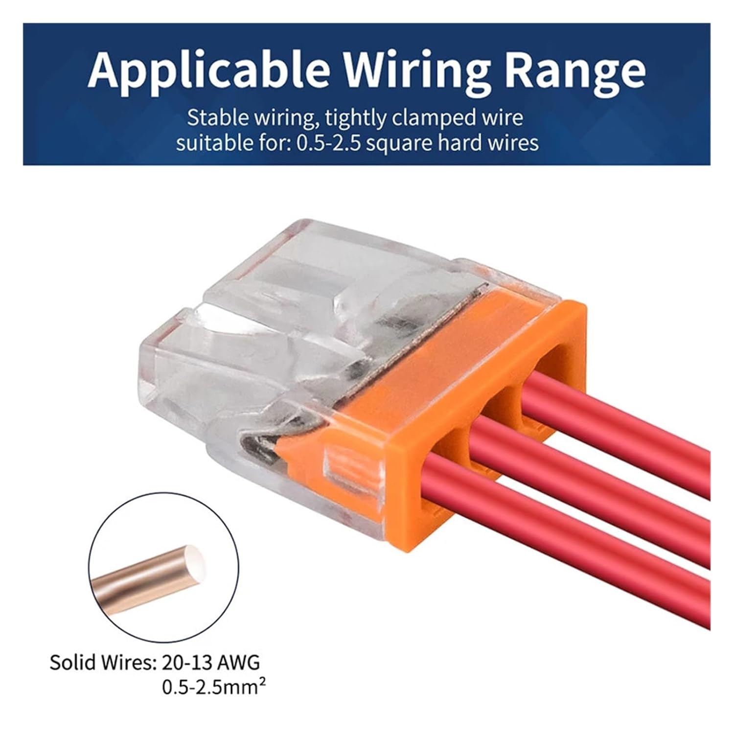 ConnectorsHign-concerned Chemical : NoneModel Number : CMK-20Voltage : 415VOrigin : Mainland ChinaCertification : CE,Voltage(V) : 450VCurrent(A) : 24AConnection capacity : 0.5-2.5mm²Material of connectors shell : Transparent ploycarbonateMaterial of conductive parts : Thinned copperMaterial of contact springs : AISI 301 stainless steelWorking Temperature : -40°C-85°CStrip length : 11mm/0.43Inch