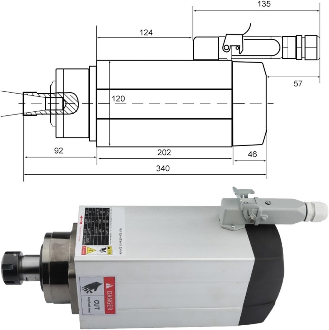 Slotting Cutter ArborsCooling method: air coolingPower interface: Waterproof aviation plug is optional. Aviation plugs marked with "1", "2", "3", and "4". "1", "2", and "3" are connected to the inverter (U, V, W) respectively, and 4 are connected to the ground of the inverter. (Note! Our spindle "4" is connected to GND to ensure personal safety! !)Power: 4.5kw (1HP=0.735w)Voltage: 220vCurrent: 15.8/9AFrequency: 300HzSpeed: 18000rpmRunout: less than 0.01mmChuck: ER25Clamping tool diameter: 1mm, 2mm, 3mm, 3.175mm (1/8), 4mm, 5mm, 6mm, 6.35mm (1/4), 7mm, 8mm, 9mm, 10mm, 11mm, 12mm, 12.7mm (1/2), 13mm, 14mm, 15mm, 16mm