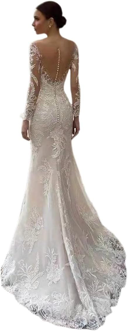 Beach Mermaid Wedding Dresses for Bride 2026 Lace Appliques V Neck Long Boho Bride Dress with Train Size Chart: US 0:bust:32inch,waist:24.75inch,hips:35.75inch, hollow to hem:58inch,height:63inch US 2:bust:32.5inch,waist:25.5inch,hips:35.75inch, hollow to hem:58inch,height:63inch US 4:bust:33.5inch,waist:26.5inch,hips:36.75inch, hollow to hem:58inch,height:63inch US 6:bust:34.5inch,waist:27.5inch,hips:37.75inch, hollow to hem: 59inch,height:65inch US 8:bust:35.5inch,waist:28.5inch,hips:38.75inch, hollow to hem:59inch,height:65inch US 10:bust:36.5inch,waist:29.5inch,hips:39.75inch, hollow to hem:60inch,height:67inch US 12:bust:38.0inch,waist:31.0inch,hips:41.25inch, hollow to hem:60inch,height:67inch US 14:bust:39.5inch,waist:32.5inch,hips:42.75inch, hollow to hem: 61inch,height:69inch US 16:bust:41.0inch,waist: 34.0inch,hips:44.25inch, hollow to hem:61inch,height: 69inch Warm Tips: 1: Please allow 1-3cm differs due to manual measurement. 2: Color may be lighter or darker due to the different devices display. 3: Dry Clean or Handwash. Please Flat Dry and Iron on low heat.