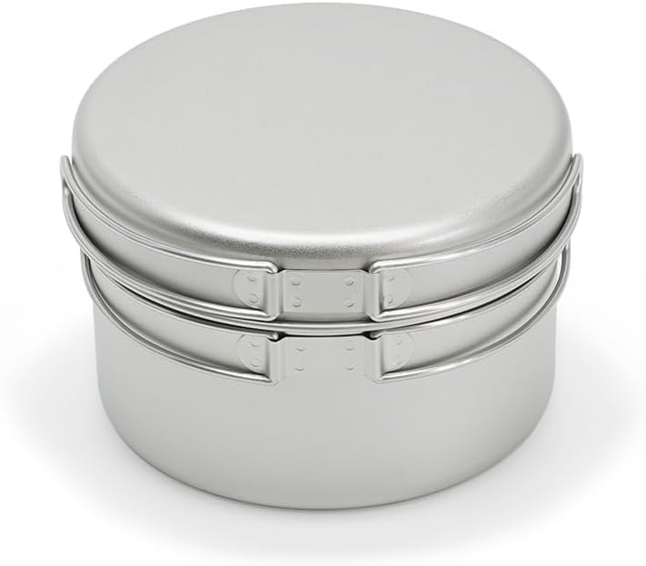 Large and Small Titanium Deep Pot and Pan Set Net case included. Item Number: BM-094. Material: Titanium Size (main unit): Large/φ5.9 x 3.9 inches (150 x 100 mm); Capacity: 5.8 fl oz (1750 ml); Small: 4.1 x 3.9 inches (106 x 100 mm); Capacity: 38.2 fl oz (970 Size (frying pan): Large/Φ 6.3 x 1.2 inches (160 x 31 mm) (Capacity: 20.3 fl oz (600 ml); Small/φ 4.5 x 1.0 inches (114 x 25 mm); Capacity: 10.Weight: 14.1 oz (401