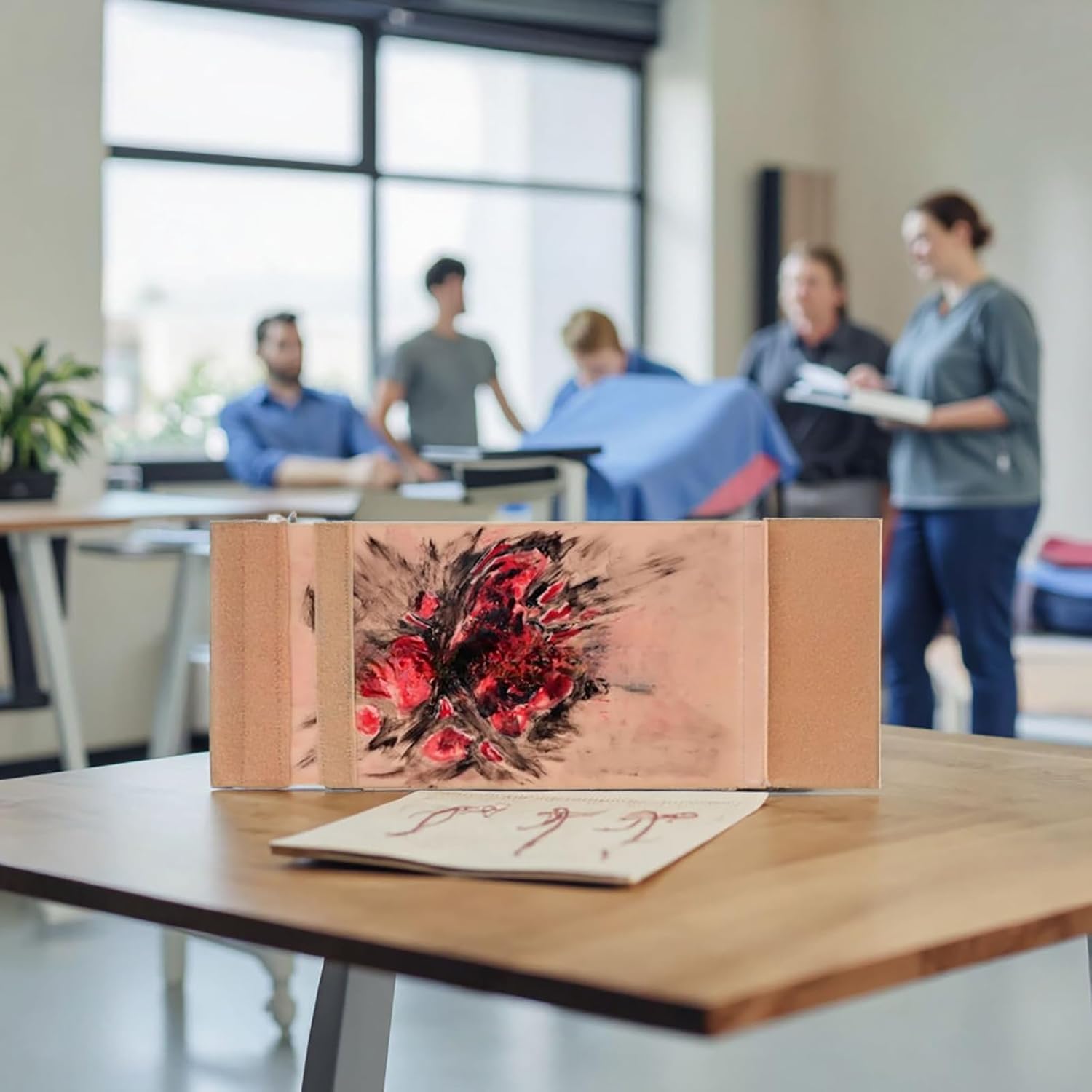 Product Specifications: Product Name: Burn Training Model Material: Silicone Size: 340*165*2.5mm Type: Teaching Demonstration Model Package List: Degree burn training model *1