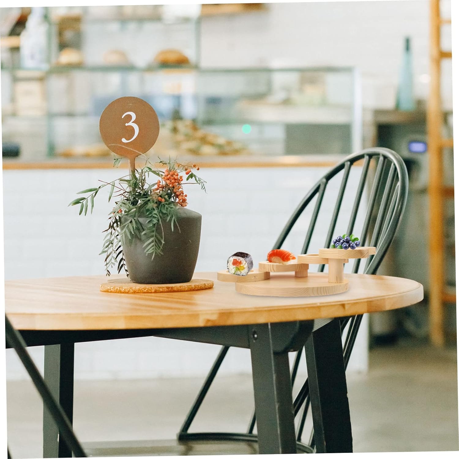 Package Include 1 x display stand Features -Color: Khaki dessert serving tray. -Material: Wood five-step ladder showing stand. -Size: About 37.00X19.50X10.00cm/ 14.54X7.66X3.93inch sushi showing tray. - This beautiful display stand is a nice decor, a serving tool and a piece of art wooden sushi showing tray. - Five- layer ladder design serving tray can be used for better classification of food without mixing flavor snack display stand. - Wood material is sturdy and , could keep it for a long time rotating step shape dessert - The wood display stand is wear resistant and not easy to broken or deform wooden food stand. - The wood food service stand is in floral shape which is participial and act as a wonderful decoration for your dinner food dessert display tray.Goods Descriptionsnack display stand It is a nice tray for food, dessert, snack, fruit displaying.rotating step shape dessert plate It is also a friends or families and they will like this beautiful plate.food dessert display stand This is a dessert food snack plate, made of wood material, sturdy and for
