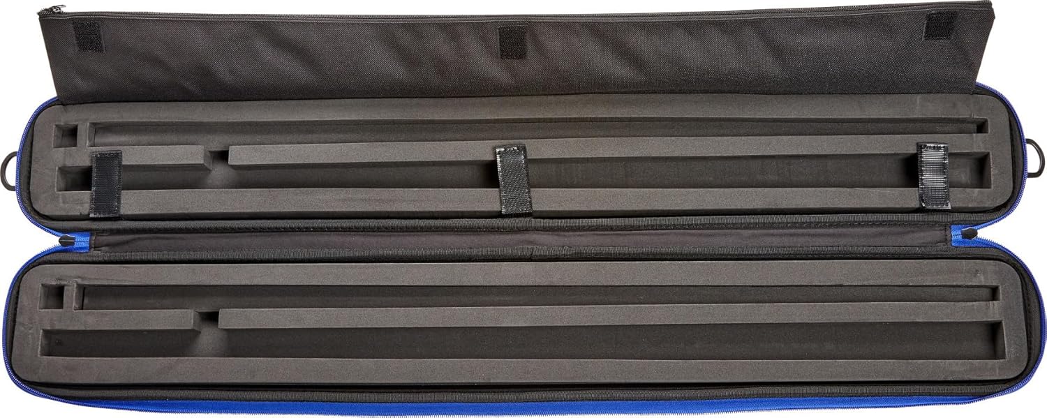 Who This Is For The Casemaster Parallax Pro is designed for the practical pool player who needs a reliable pool cue case for their 2-piece cues. Whether you're heading to league night, a tournament, or just casual play at the local pool hall, this cue case strikes the perfect balance between foam-padded protection and lightweight portability. It's the ideal pool stick case for players who want dependable gear without the weight of a traditional hard shell. How to Use Unzip the case to reveal the form-fitted foam compartments. Slide your 2 cue butts and 2 shafts into their designated slots, which keep each piece secure and separated during transport. Use the zippered exterior pocket to stow your chalk, tip tools, and other billiards pool accessories. Grab the rubberized handle to carry your pool cue bag effortlessly to your next match. Product Dimensions 33.75 in L x 5.5 in W x 3.5 in H | Weight: 2.7 lbs