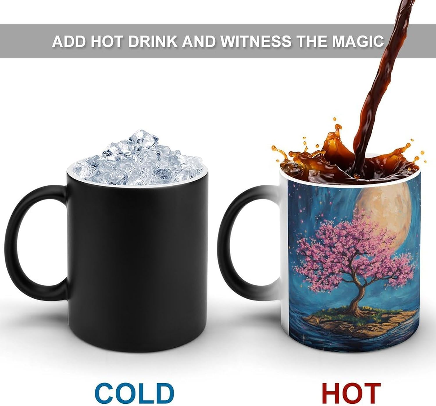 This magical color-changing mug is made of ceramic, with a smooth and delicate body and a comfortable grip. Its core highlight is the temperature-sensitive color change, providing a surprising interactive experience. It's a creative gift that carries heartfelt meaning, suitable for giving to loved ones on special occasions such as birthdays, Valentine's Day, anniversaries, etc., symbolizing the warm companionship of "a mug for a lifetime."
