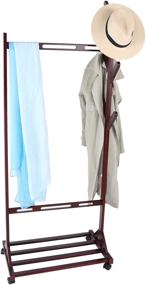 Feature: 1. The main rod and side rods are finely ground, beautiful and practical, durable in use. 2. Thick material, strong load-bearing capacity, rounded corners will not hurt your clothes or hat. 3. Large capacity and multifunctional, the 6 hooks make full use of small space, can be used to hung hat. 4. Multi-capacity, it can hanger 40-50 clothes hangers, the upper and lower layers can be used Compatible with hanging items. 5. Universal wheel can move freely and can be locked Compatible with more comfortable use, perfect Compatible with living room, dining room, study, bedroom, etc. Specification: Condition: 100% Item Type: Coat Rack Material: Wood Applicable Place: Living room, dining room, study, bedroom, etc. Product Size: Approx. 65 x 42 x 166 cm / 25.6 x 16.5 x 65.4 in Weight: Approx. 3620g / 127.7oz Package List: 1 x Coat Rack?1 x Screw Accessories Kit?1 x Installation Instruction Manual Note: 1. Please allow slight error due to manual measurement. Thanks Compatible with your understanding.2. Monitors are not calibrated same, item color displayed in photos may be showing slightly different from the real object. Please take the real one as standard.3. Please kindly note that this product needs to be assembled by yourself. Our company has a perfect quality guarantee system and after-sales service system. Our logistics will be faster than amazon website. Please feel free to place your order.If you have a problem, please contact us the first time.