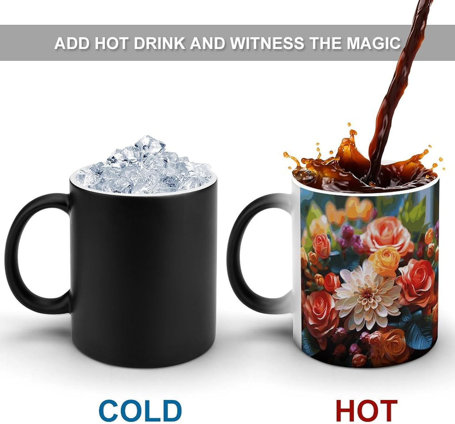 The personalized color-changing cup is made of ceramic, which feels as soft as jade and gives people a comfortable and friendly texture. Its good heat preservation performance can lock the temperature of coffee for a long timeFunny pattern print design, when filled with hot water, the cute pattern will appear and the colors will become bright.This color changing art coffee tea mug are a fun and unique addition to any home or office, adding a touch of fun to any table setting