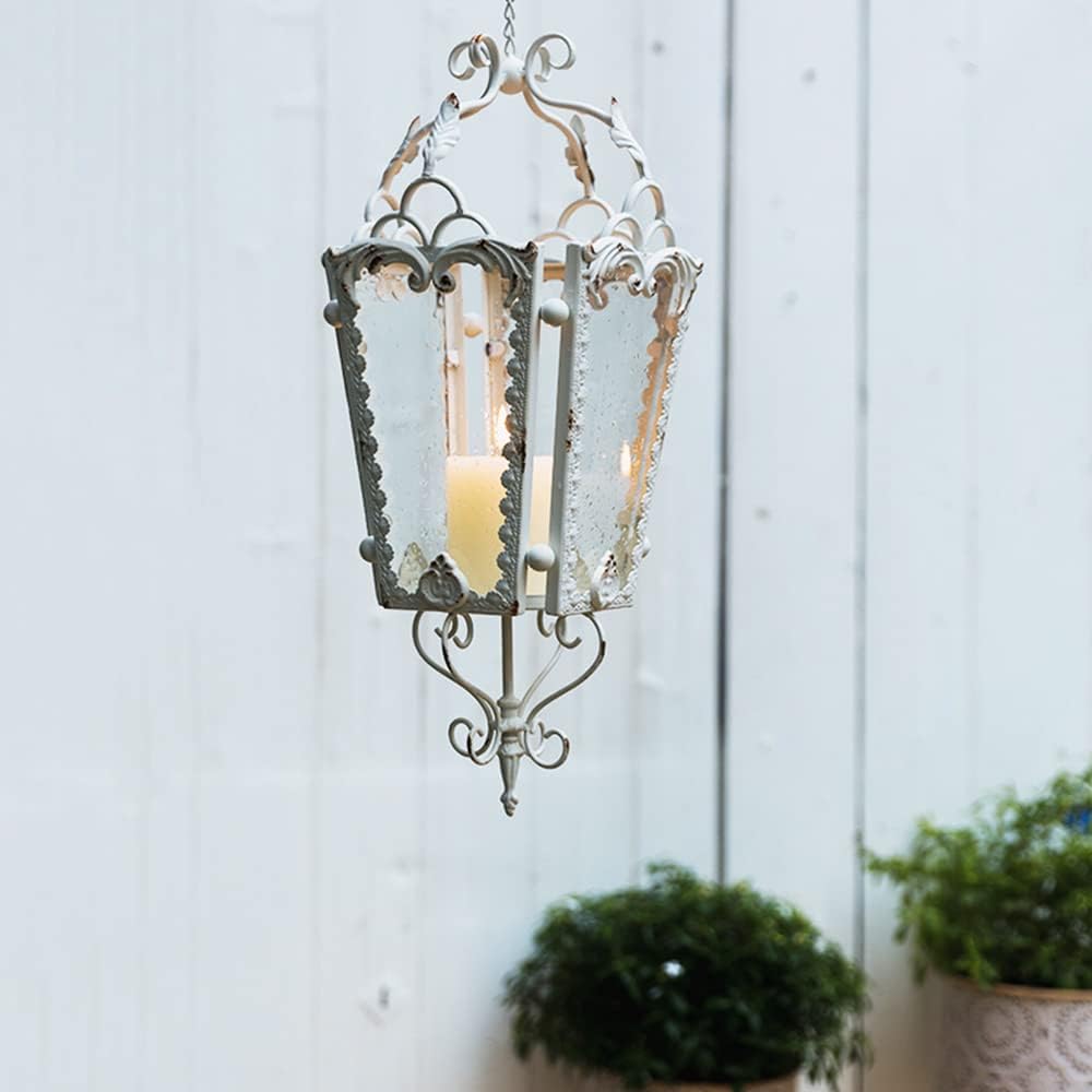 BOOMLATU Distressed White Decorative Candle Lanterns,Metal Hanging Pendant Light Candle Lantern Lamp for Indoor Outdoor