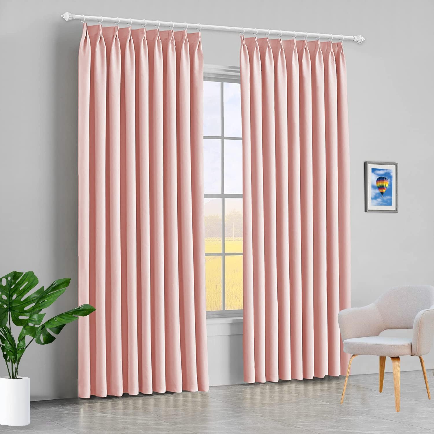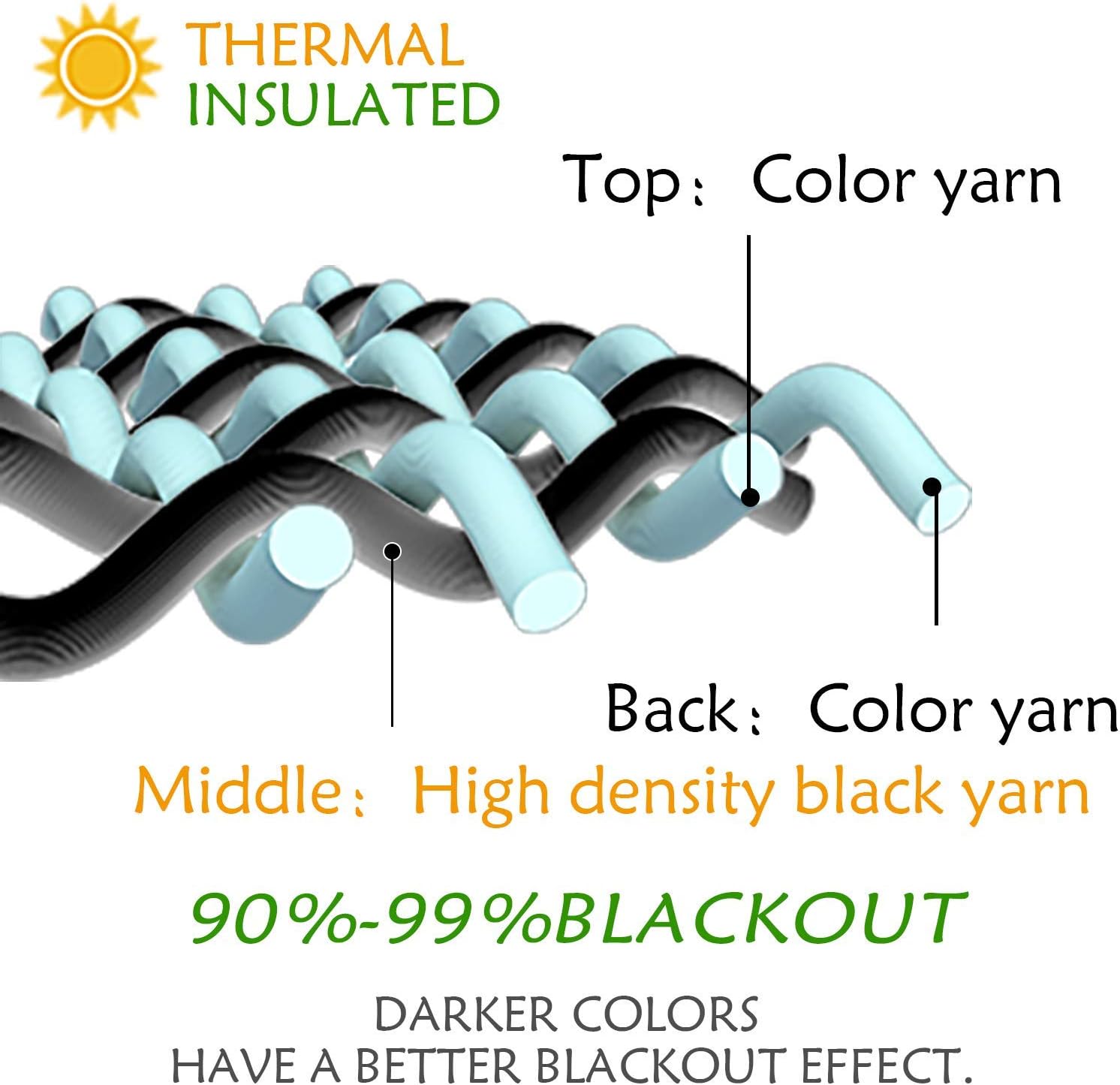 Curtains are carefully made by our senior workers. Thread trimmed and wrinkle free. Perfect seam also gives a finished look. Sateen blackout pinch pleat top curtain panels bring a rich, luxurious look and ultra soft feel Widely suitable for home and office decorations, like bedroom, living room, dining room, patio sliding glass door etc. These panels are interwoven with blackout insulation provided by Light Block and Thermax technology. Designed to block light and preventing harmful UV rays from reaching your floors and furniture, these panels also prevent cold or heat transfer from the outside, increasing the energy efficiency of your home. The panels provide unparalleled privacy and allows you to create darkness any time of day, making them perfect for anyone seeking to block daylight, take a nap, or keep sun glare off your TV. Sateen panels are constructed with hidden tabs, panels can be hung on your favorite curtain rod up to 1 5/8" dimeter leaving the pinch pleat top to add a touch to the finished look of your window decor. Our curtain panels are perfect for any living room, bedroom, family room, dining room, bathroom and office. Our stylish designs will suit