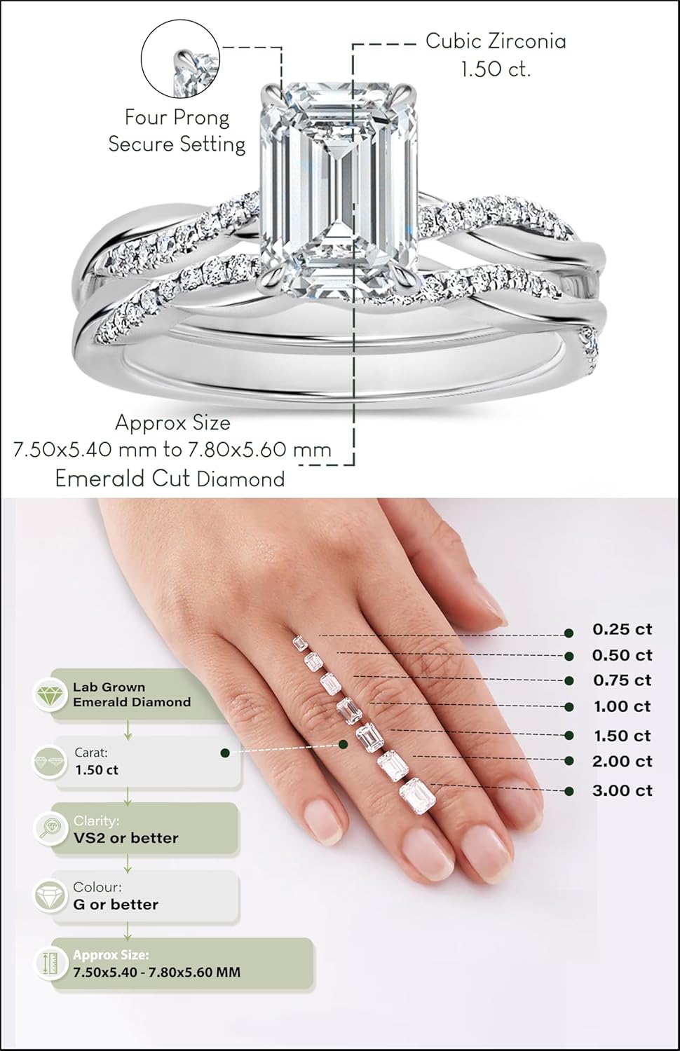 This lovely Interwined Engagement Ring Set features Emerald Cut & Round Lab Grown White Diamond(s) or Cubic Zirconia in Prong Setting.All Stones are sparkling.Our product comes with a complimentary jewelry box for safe storage and presentation.SKU # CV2129-925-P