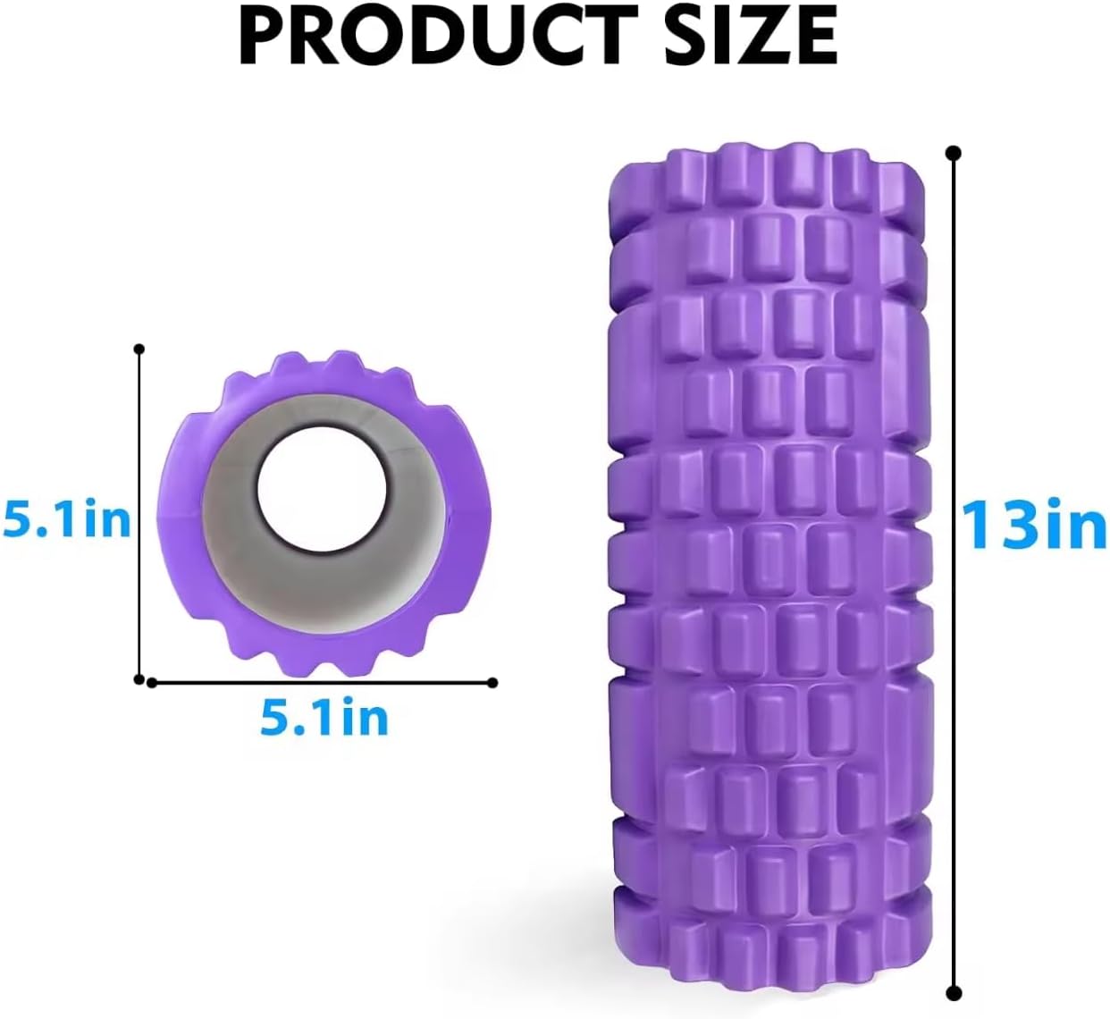 5 in 1 Foam Roller Set with Hollow Core Deep Tissue Massager, Muscle Roller Stick, Stretching Strap, Spikey Plantar Fasciitis Ball, and Carry Bag, with 4K eBook