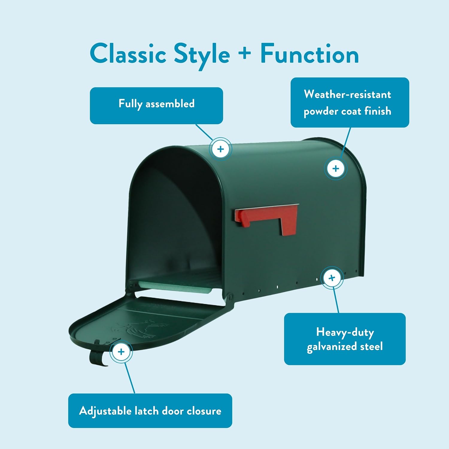 Say hello to the Elite Large-our no-nonsense, all-style metal mailbox that’s been winning hearts (and front yards) for years. This curbside mailbox brings that traditional, timeless vibe you love, with the kind of real-deal functionality the USPS approves of-literally. Made from galvanized steel and coated for extra durability, it’s ready for whatever the forecast (or your delivery driver) has in store. Need room for stacks of mail, magazines, or a few too many “add to cart” moments - this large mailbox has you covered. Perfect for residential mailboxes, outdoor mailbox setups, or anyone browsing mailboxes for outside that don’t skimp on function or space. It comes fully assembled, latches securely, and makes upgrading your mail game feel effortless. When it comes to mail boxes for house outside, the Elite isn’t just popular - it’s practically iconic.