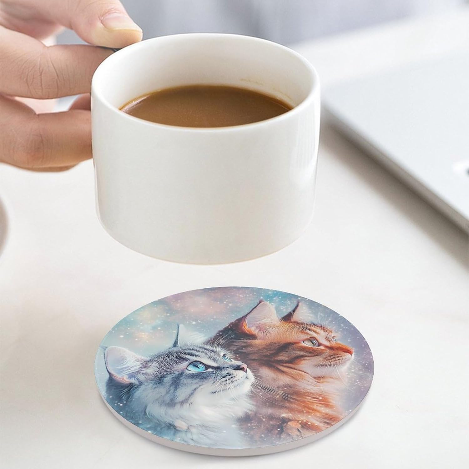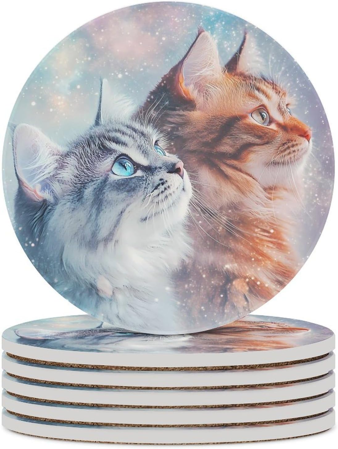 coasters,coasters set of 4,coasters set of 6,cute coasters with Funny Pattern Printed Ceramic Coasters with Cork Base Cup Holder Absorbent for Drinks Coasters Round Tabletop Protection Mat Decorative Cute Coffee Cup Beverage Coasters