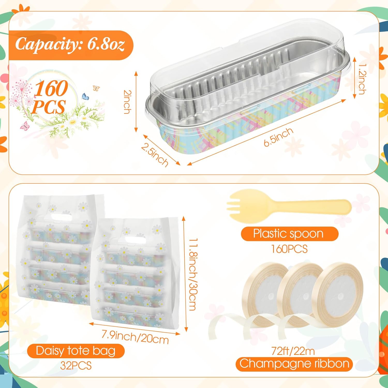 | Included Components | 160 x Easter loaf pans, 160 x Yellow forks, 3 Roll of beige ribbons, 32 x Daisy gift bags |