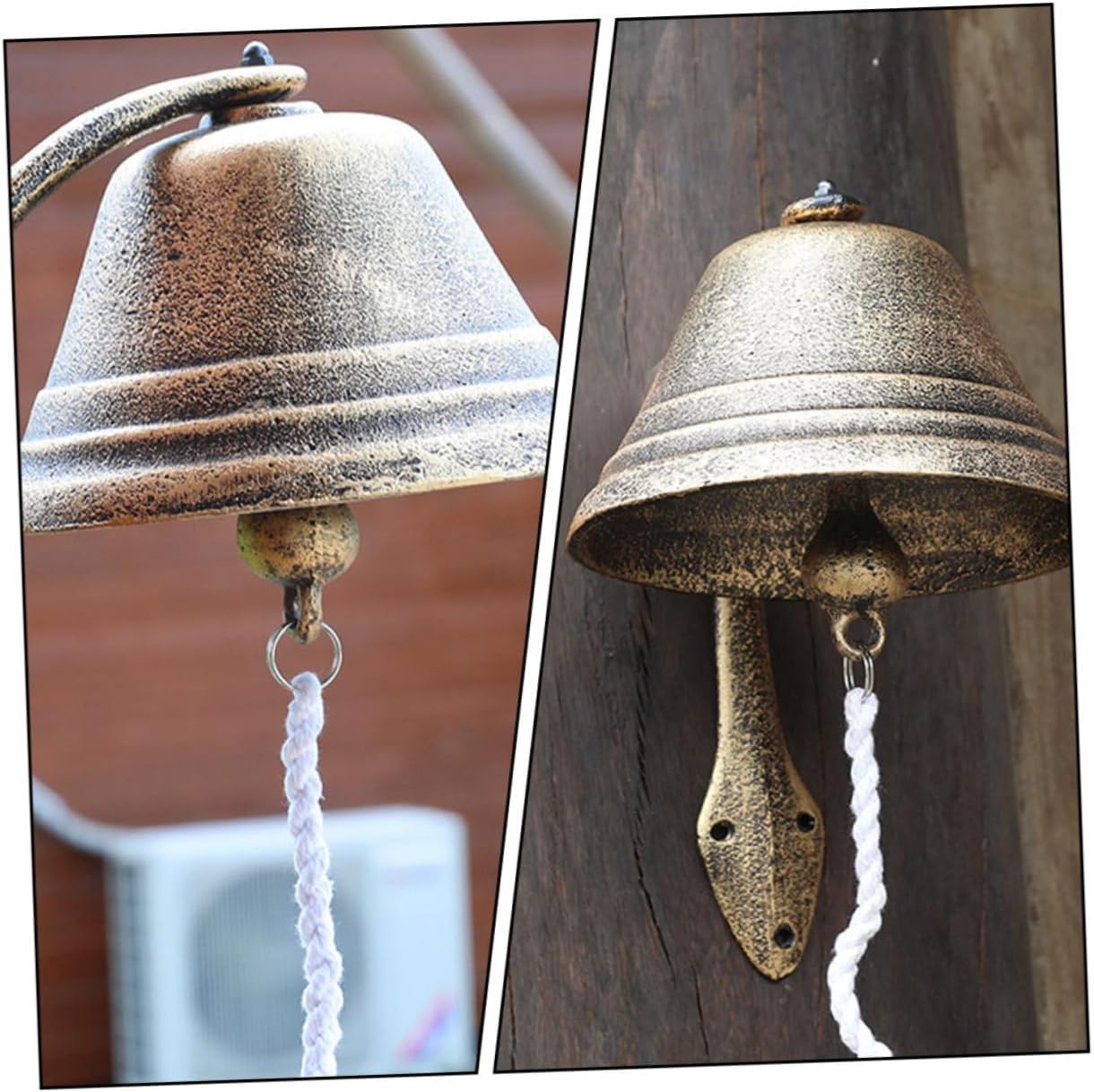 Package List 1 x Cast Iron Doorbell Characteristics - Material: Cast iron, cotton rope. - Color: Assorted Color. - Size: Approx. 24.00X17.50X17.50cm/9.43X6.88X6.88in. -Product Info:Retro doorbell decoration - Make the empty and boring walls become vivid and the temperament of your entire space. Welcome Door Decor - It features a vintage and retro style, full of rustic style and atmosphere Dinner Bell. - Cast iron doorbell, beautiful appearance, clear texture, solid and strong Iron Doorbell. - Eye-catching and life-like. The gift for your friends who like to decorate their house Hand Cranking Bell. - Crisp ringtone makes it become a perfect dinner bell or welcome bell Cast Iron Doorbell.Goods InformationAntique Style Doorbell Do you want to decorate your courtyard or garden? If so, our cast iron doorbell is carefully prepared for you.Iron Doorbell Its unique design can not only decorate your house but also add a touch of whimsy and unexpected style to your doorway