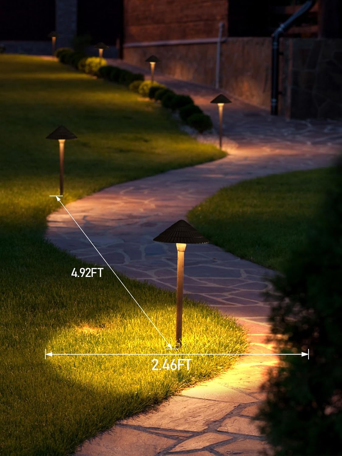 Versatile Outdoor Lighting for a Beautiful LandscapeThis lighting kit includes 8 pathway lights, 4 spotlights, and 24 connectors, making it easy to create a customized outdoor lighting setup. The 3000K warm white glow enhances walkways, gardens, patios, and home exteriors.Durable, Weatherproof, and Safe for Outdoor UseMade from sturdy die-cast aluminum, these lights are IP65 waterproof, ensuring reliable performance in rain, snow, and harsh weather. The low-voltage 12-24V system is energy-efficient and safe for children and pets. ETL certification guarantees quality, and the 3-year warranty provides added peace of mind.Note: A transformer and cable are required and need to be purchased separately.SpecificationsPath LightingVoltage: 12-24V AC/DCWattage: 3WLuminous: 120lmCRI: 90+CCT: 3000K Warm WhiteBeam angle: 360°Working temp: -4℉-104℉Waterproof rating: Wet LocationMaterial: AluminumFinish color: BronzeSpotlightVoltage: 12-24V AC/DCWattage: 4WLuminous: 164lmCRI: 90+CCT: 3000K Warm WhiteBeam angle: 48°Working temp: -4℉-104℉Waterproof rating: Wet LocationMaterial: AluminumFinish color: Bronze