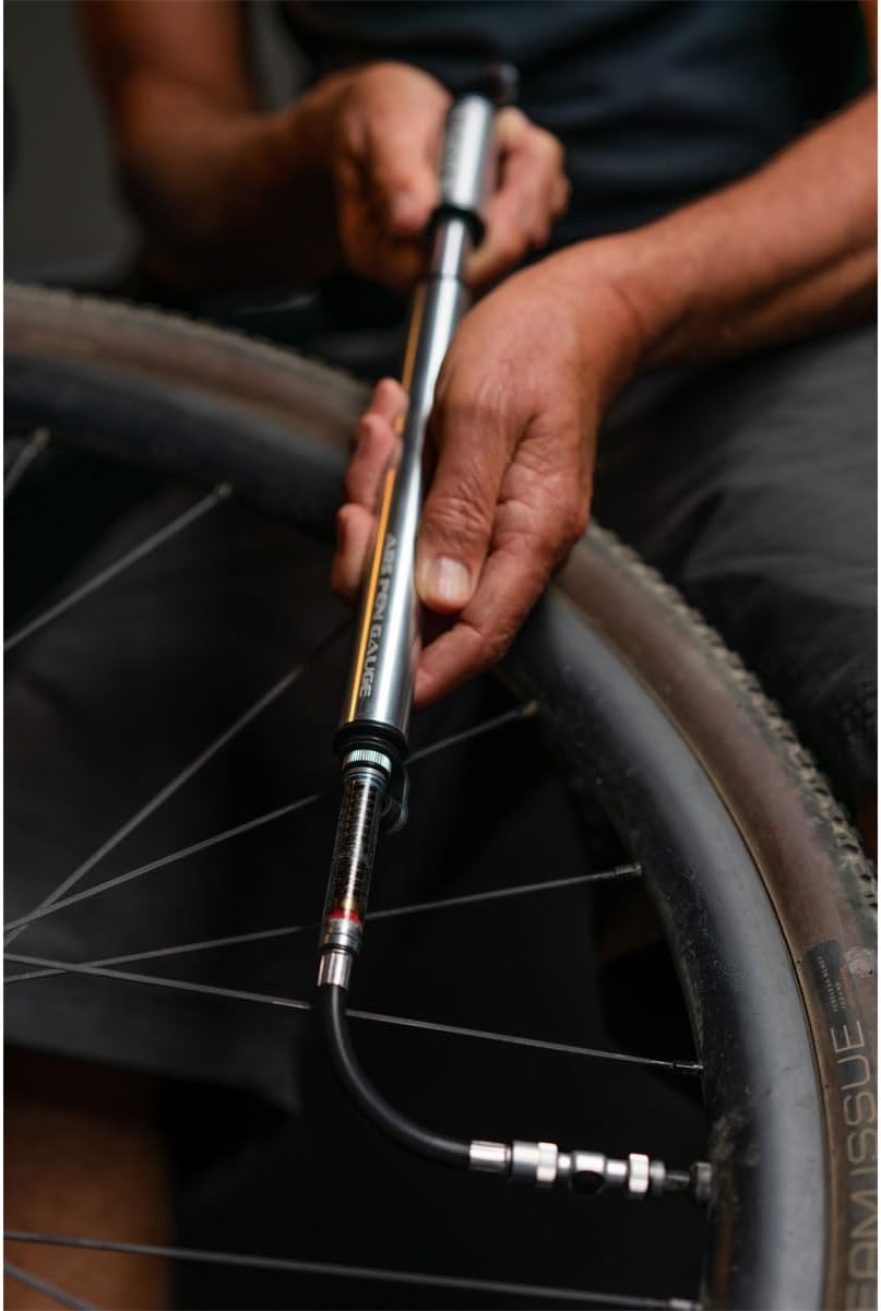 The Gauge Drive HV is a compact, lightweight bicycle hand pump with efficient overlapping handle optimized for high volume applications. The CNC-machined aluminum barrel, handle, and piston are durable and built to last. The pump is equipped with the ABS Pen Gauge Flex Hose, an integrated pressure gauge compatible with Presta and Schrader valves. Includes Composite Matrix frame mount.