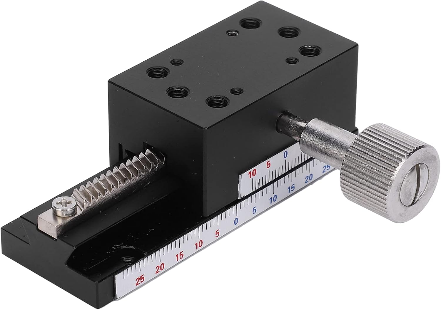 Item type: Linear X-axis stage Table size: approx. 40 x 25mm/1.6 x 1 inch Horizontal Bearing Load (N): 29.4 Vertical Bearing Load (N): 14.7 Movement quantity (distance X): ± Approx. 25 mm / 1 inch. Amount of movement in one rotation: approx. 18mm/0.7inch Sliding table material: aluminum alloy Feeding method: gear type Movement Guide: Milano Guide Surface treatment: anodic oxidation treatment Horizontal movement accuracy (μm): 30 Vertical movement accuracy (μm): 30 Corresponding to MISUMI model: XLWG70 Package List: 1 x X-axis linear stage
