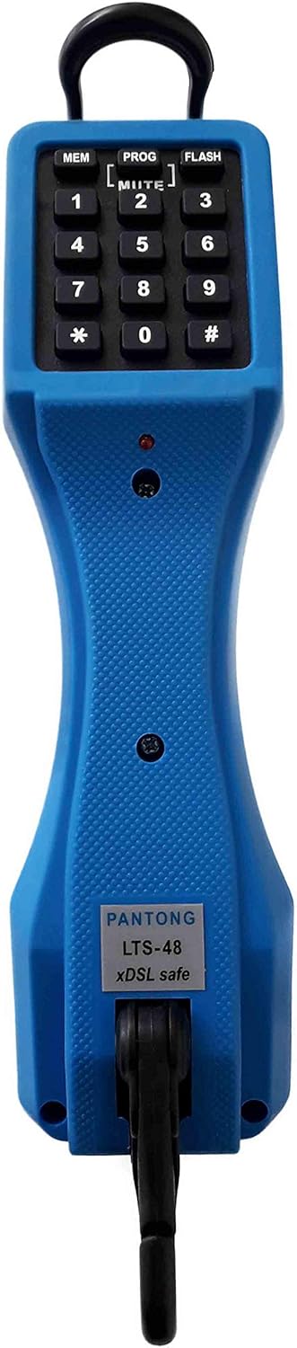 For professionals who need heavy duty telephone test set with fully data safe and DSL filter : -Mode dialing DTMF / Pulse -Mode Operation : Talk, Ring, Monitor -Line Polarity independent and Polarity Indication -High Shock/Drop Resistance Housing -1 Last Number Redialing and 10 speed dial (repertory memory) -Mute -Flash -Data Safe High Impedance Monitor -High impact Nylon 6/6 case -Non-conductive safety Belt Clip and Hanging Loop -Protection against high volt and transient induced by AC -Off-hook Datasafe with DSL filter -High standard Testcord set with bed-of-nails and piercing pin clips. -Tel. line powered ( No requires battery)
