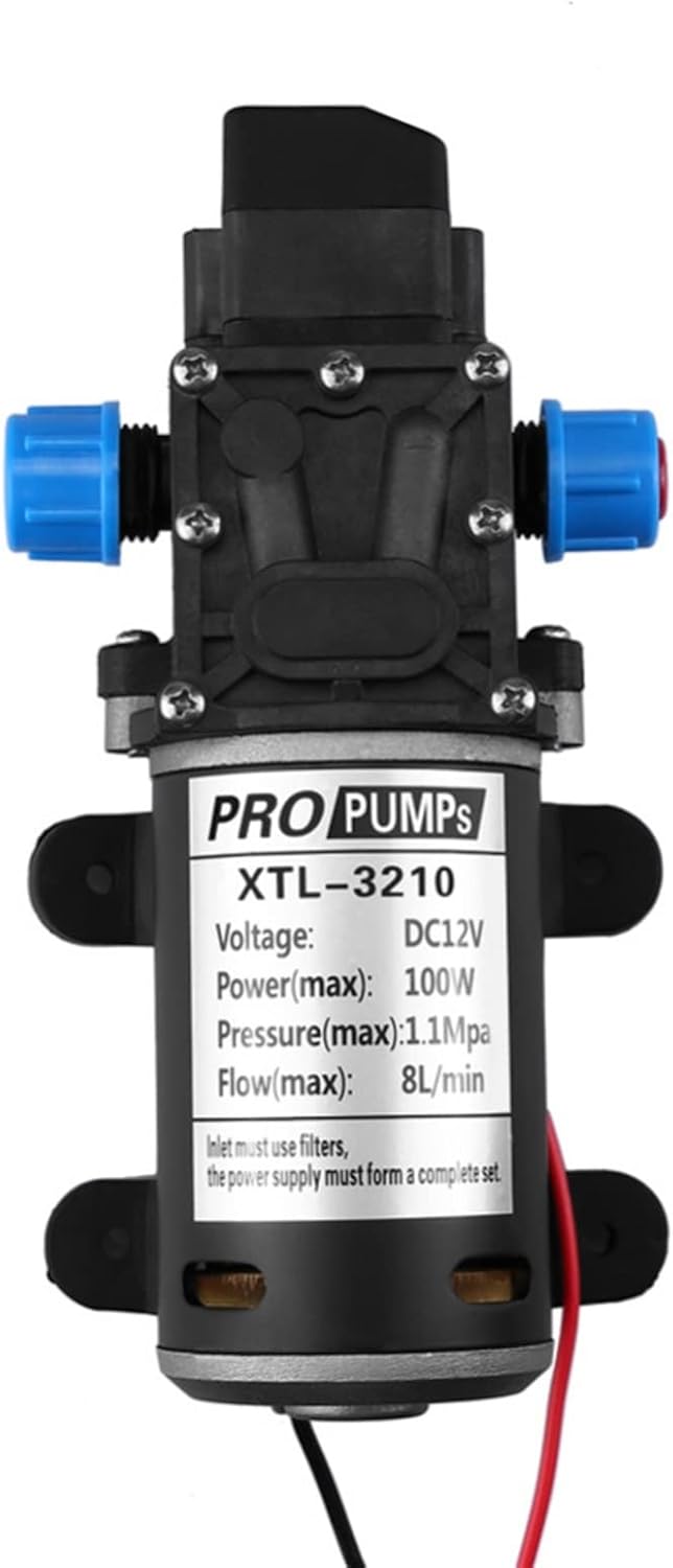 1. Tool-free disassembly and cleaning: Flexible structural design, easy to disassemble and clean without any tools.2. Easy to carry and use: This pump is small in size and equipped with a handle, which is very convenient to carry, so it can be used in small spaces. Suitable for swimming pools, ponds, gardens, basements, aquariums, irrigation and other places.Specifications: Material:ABS shellMain Color:BlackVoltage:DC 12VPower(max):100WWork Pressure:0.7Mpa/101.5psi (145psi=1Mpa)Flow(max):8L/minProtection Valve Type:intelligent valve (with pressure switch)Head:70 metersRange:9 meters Suction Distance:1.5 metersSize(L x W x G):18.3 x 4.7 x 4.8cm/7.2'' x 1.85'' x 1.89'' Interface Outer Diameter:Approx. 18mm / 0.71"Interface Inner Diameter:Approx. 7.5mm / 0.30"Suitable Inlet/Outlet Hose Size:12mm outer diameter,8mm inner diameterPackage Weight:approx. 1.18kg