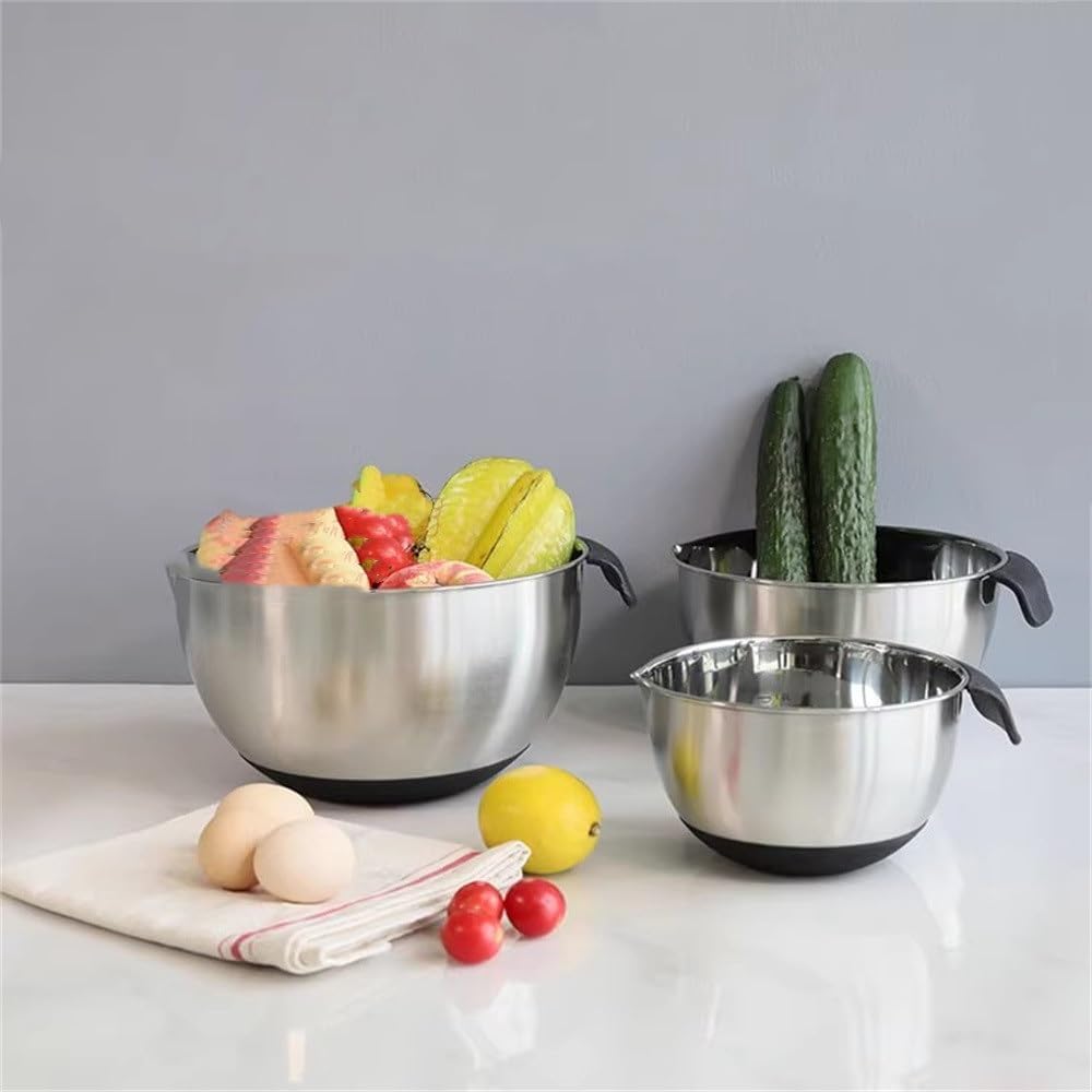Perfect for baking/cooking/preparation, Such as salads,mixing eggs, kneading dough, Space saving to keep your kitchen neat and well organized, Essential kitchen tools for each family,meet more daily needs.Material: stainless steelSize: 1L,2.5L,4.5LMixing bowls are an integral part of the cooking process and need to be always available in every home.The mixing bowl is ideal for home or commercial kitchens.The Stainless Steel Mixing Bowl is your ideal cooking companion, perfect for mixing, stirring salads, kneading, marinating and storing.The mixing bowl will easily meet your kitchen needs and help you to efficiently finish every delicious meal.With it, improve cooking efficiency and make your kitchen life easier and more enjoyable.Packing List : Mixing Bowl X 2 .