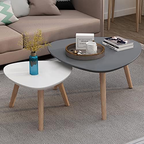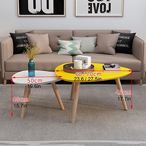 Transform your living space with this stunning side table set, designed to enhance both aesthetics and functionality. This versatile set includes a large and a smaller side table, strategically varying in height to create a layered, dynamic look that enriches your decor. Perfect for compact living environments such as one-bedroom apartments or dorms, this coffee table set is both lightweight and flexible, allowing for easy rearrangement to suit your needs. Whether you need a side table, end table, or a coffee/snack table, this set adapts effortlessly to your lifestyle. Display your favorite albums, vases, or decorative items to elevate your home’s ambiance. Its stylish design makes it suitable for a variety of spaces, including living rooms, balconies, offices, bedrooms, studies, lounges, and children's rooms. Crafted from durable MDF and solid wood, our tables are available in a range of attractive color combinations, including Blue and White, Yellow and White, Grey and White, and more. The larger table measures 60cm/23.6in in diameter, while the smaller one is 50cm/19.6in, both featuring rounded corners for safety and ease of cleaning. The sturdy, sloping wooden legs ensure stability, making this set not only eye-catching but also reliable. Please remember to avoid standing on the tables and to keep them indoors to maintain their quality. For any questions or concerns, our customer service team is ready to assist you within 24 hours. Elevate your space today with this stylish side table set!