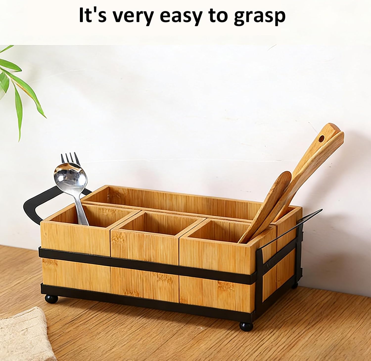 Multifunctional Wooden Kitchen Countertop Utensil Holder For Knives Forks Chopsticks And Makeup Brushes With Metal Frame Features : Strong Wooden and Metal Construction Crafted from premium natural wood paired with reinforced metal framework for enhanced stability and resiliences This sturdy combination prevents wobbling or warping while maintaining elegant appearance , outperforming single materials stands Purpose Storage Perfect for both culinary space and dressing table use organizes dining utensils including knives , forks , and chopsticks in kitchens while neatly arranging makeup brushes , lipsticks , and beauty tools in bedrooms Single unit efficiently serves two areas Keywords : space planner , kitchen and vanity storage , multi functional rack Smart Compartment Design Features carefully planned tiered sections that methodically separate different items Refined Finish and Safe Handling Expertly smoothed wooden surfaces deliver uniform texture without rough edges or uneven borders Space Saving Countertop Design Compact vertical form maximizes kitchen counter or dressing table space Efficiently keeps indispensables within reach while maintaining tidy , well arranged appearance in your cooking or beauty area Specifications : Substance : wood Craftsmanship : Finely , smooth face without burrs Selling characteristics : dark / light Practicality : Suitable for kitchen countertops , it can effectively classify and store knives , forks , chopsticks and other tableware to keep the kitchen tidy and orderly Package Includes : Desktop storage rack Note : Before using the accessory , please check if it is compatible Pay attention to the storage methods