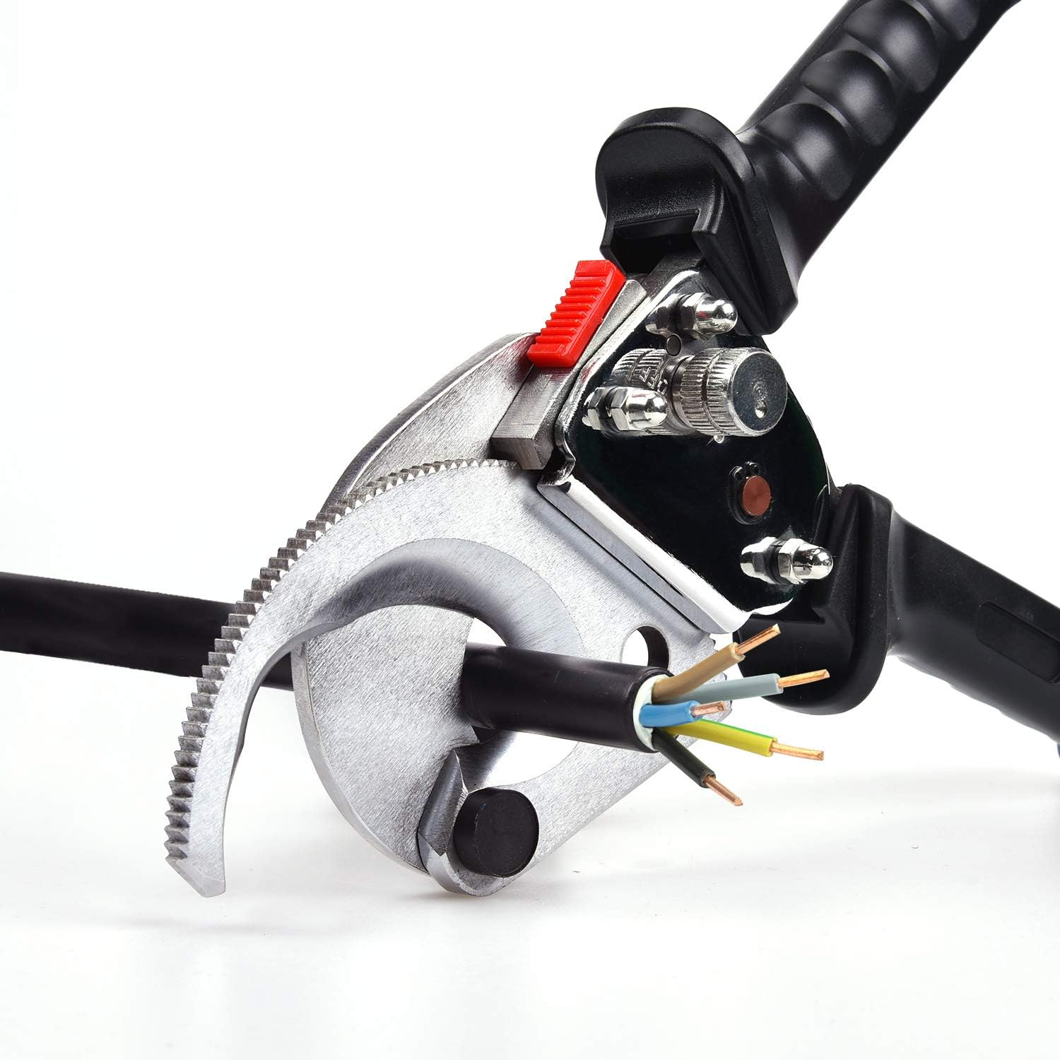 Ratchet Cable Cutter, Round Section, Steel Blades Cut Up To 300mm2 Cu-Al Wires And Cables, 9.4InchSpecifications:Color: Black&SilverMaterial: Carbon SteelApply To: Cu-Al cable less than or equal to 300mm2Total Length: 240mm/9.4inchWeight: 1kgApplication: IndustryType: Crimping ToolsNote: Do not cut cables beyond the cut range.Please read the description and the specifications before you purchase. If there are any problems, please contact us. Your customer satisfaction is guaranteed. And we will provide you with effective solutions and services that will satisfy you.