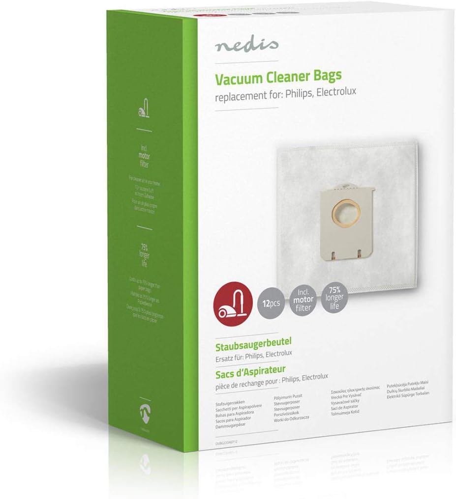 Best for: This vac dust bag replacement for Electrolux vacuum cleaners is compatible with numerous models of Electrolux vacuum cleaners like Standard Bag AirMax, Bolido, Clario, Ergospace, Excellio, Maximus, Mondo Plus, Oxy3system, Oxygen+, Smartvac, Superpro, Ultra Silencer, Viva Control and Quickstop. Being also a replacement dust bag for Philips vacuum cleaners, it is compatible with various models of Philips vacs like Standard Bag, City line, Expression, Fuchsia, Impact, Jewel, Mobilo, Performer, Specialist, Studio and Universe. Changing the vac bag often helps to keep home tidy and free from dust, fluff and crumbs.Easy to use: The light indicator on your vacuum cleaner would notify you if the hoover dust bag is full. Replace it with the new dust bag for vacs replacement for Electrolux Standard Bag Airmax vacuum cleaners. This filter bag compatible with Philips City line vacs ensures tidiness indoors.Easy to install: It is simple to replace an old dusty vacuum filter bag with this new cleaner bag replacement for Electrolux Clario. The size and shape of the dust bag compatible with Electrolux Ergospace and other models of vacuum cleaners is made especially to fit vacuum cleaner bag compartment.Dust free: This vacuum cleaner bag replacement for Electrolux Oxy3system vacuum cleaners ensures that all dust, dirt, hair, fluff and crumbs removed from your floor would stay inside the hoover bag without disseminating back in the air. Enjoy cleanness the vacuum cleaner bag replacement for Electrolux Oxygen+ provides.Improve: This motor filter for vacuum cleaner is compatible with various models and series of Electrolux vacuum cleaners. Keeping the motor filter for vacuum cleaner tidy is important for general performance of your wet and dry vacuum cleaner. A new replacement filter for Electrolux Smartvac significantly prolongs lifespan of professional and domestic vacuum systems.Box includes: 12x vacuum cleaner bag, 3x Filter.
