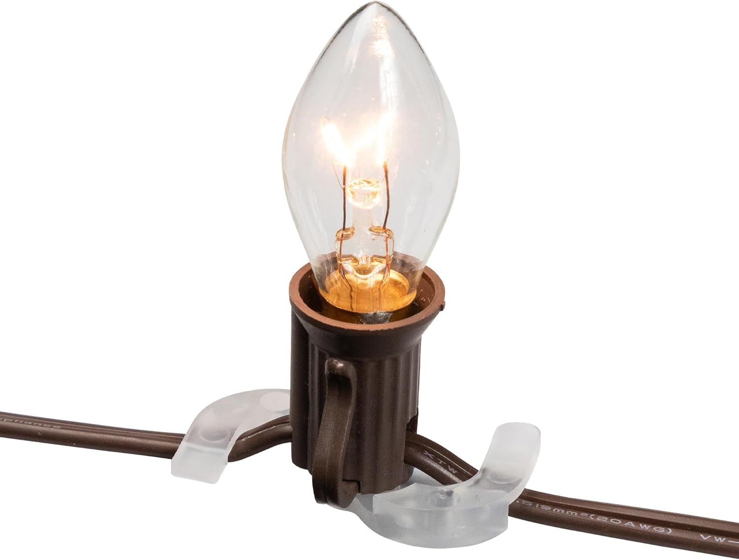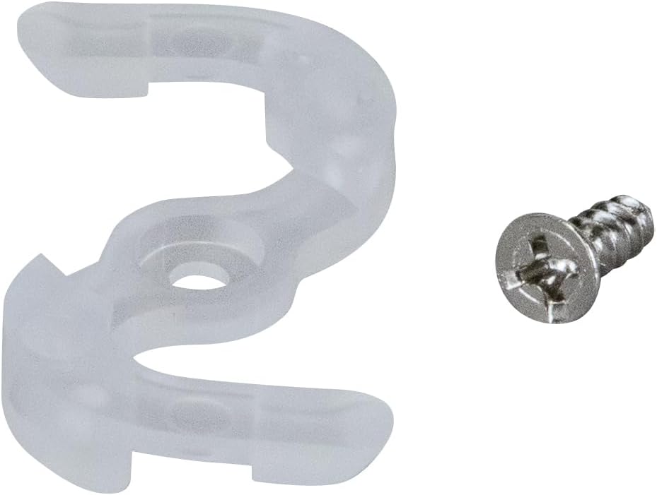 This 100-piece set of clear surface mount Christmas light clips is designed to securely hold C7 and C9 holiday light sockets for both seasonal and permanent displays. Each S-shaped clip is made for easy mounting with the included metal screws, ensuring your holiday lights stay firmly in place on any flat surface. Once installed, the light socket covers the screw for a clean, professional look, while the top and bottom of the clip securely grip the wire. These transparent light clips blend in with your surface for minimal visibility and maximum durability. Recommended for outdoor use, these surface mount Christmas light socket clips are perfect for creating a neat, organized, and professional-looking holiday light installation on roofs, walls, fences, and other flat surfaces. Features:. S-shaped clear 100-piece set. For use with C7 and C9 sockets and lights. Hold firmly with screws - included. Easy installation on flat surfaces. Durable enough for all-year use. Recommended for outdoor use Dimensions: 1.75"H x 1"W x .25"D. Material(s): plastic/metal