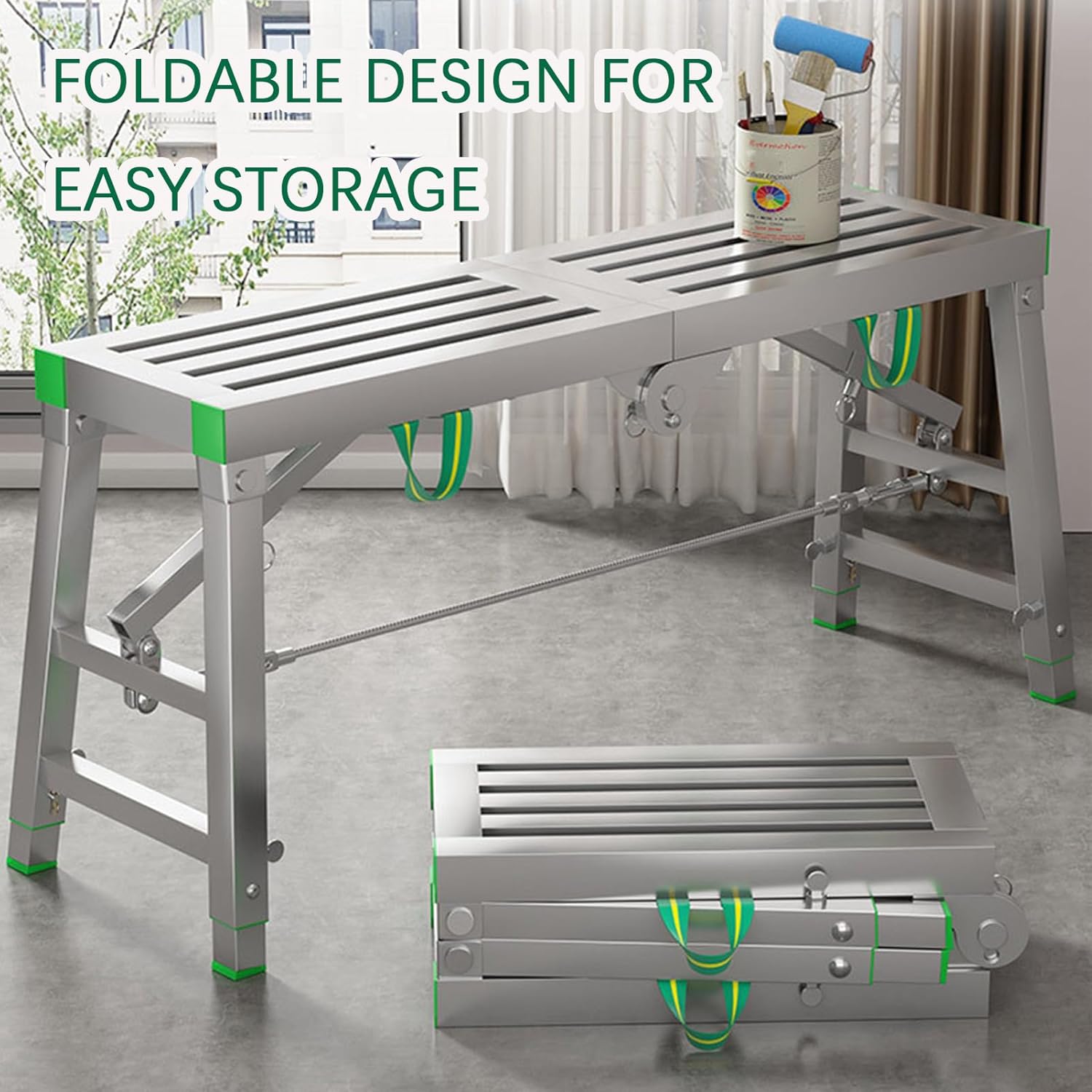 • 【Multifunctional Aluminum Platform】Portable bench scaffolding ladder can be used for home decoration, car washing, cleaning windows, lifting things, painting walls, general maintenance work, allowing painting, tiling ceilings, changing light fixtures, waxing cars and garden work . It can also help you access those out-of-reach items in cupboards or serve as a picnic table