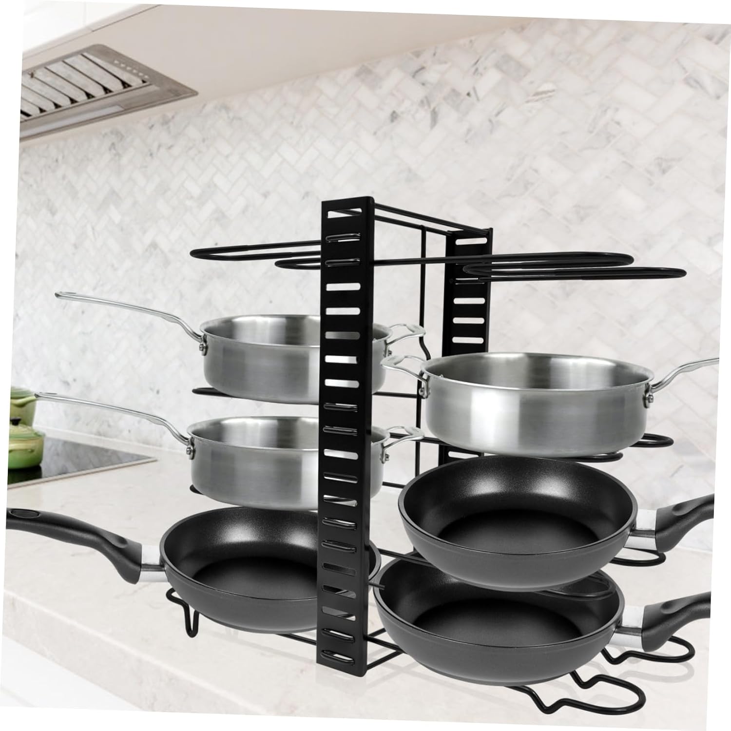 Package Include 1 x pot lid rack Features -Material: Iron storage organizer -Color: Black pan lid holder -Product Info:Multifunctional pot rack - It is convenient to use, and can meet any of your kitchen cabinet storage or household supplies storage requirements kitchen organizer. - Creative design, non-slip drop, stronger storage capacity in the same height space, and smaller space occupation pot lid holder. - Can be placed on the table, can be wall-mounted, free to use, non-slip foot pads will not hurt the table kitchen storage rack. - It’s a choice for saving lots of space in the kitchen or in cabinet and countertop cutting board rack. - Iron thick material, strong bearing capacity and . kitchen cutting board rackGoods Descriptionpot lid rack You can it on the wall or just put it on the countertop.cutting board holder Keep pot lid conveniently within reach with this storage rack.pot lid holder It is made of iron materials for to use.kitchen cutting board rack This is a kitchen pot lids and chopping board storage rack