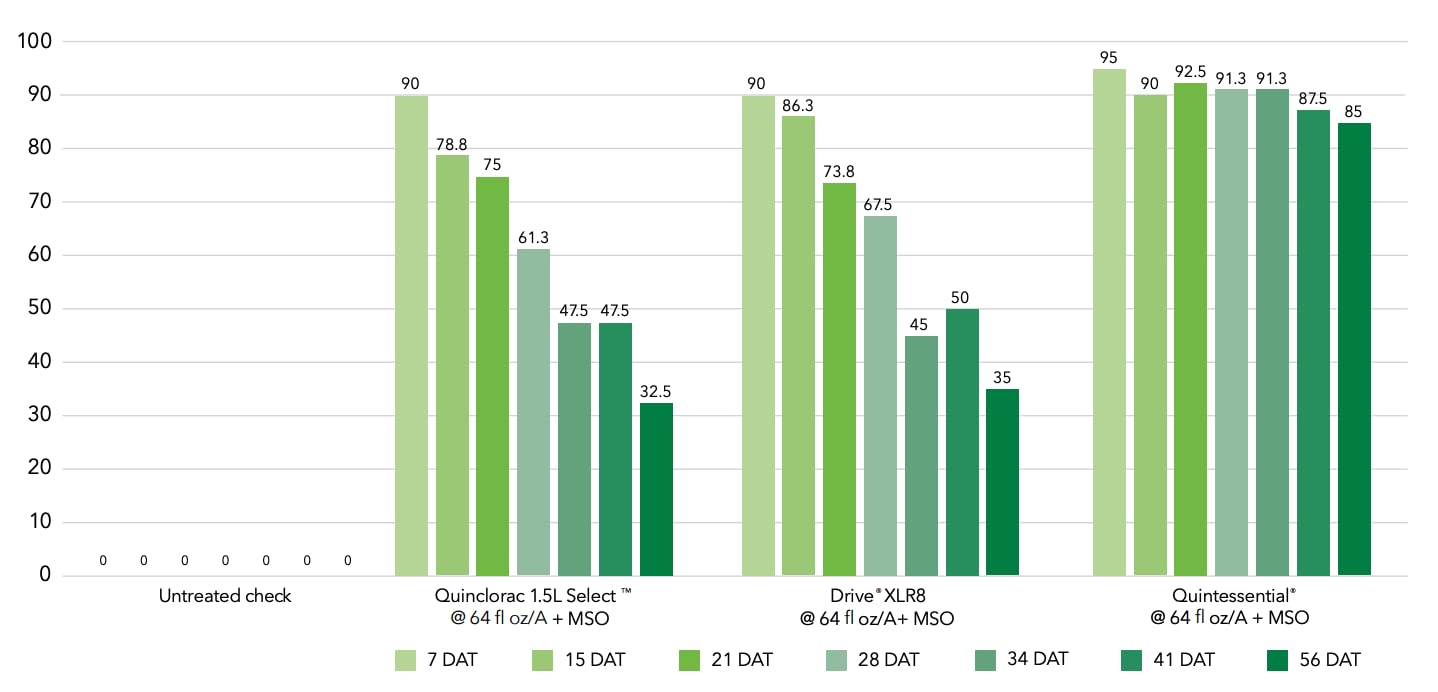 Take control of your lawn's health with Quintessential Weed Killer, the top choice for eliminating tough crabgrass and other turf weeds. This powerful liquid concentrate is quickly absorbed and acts fast, working well even in dry conditions or after rain. Quintessential is powered by H Value Technology, alters the formulation of quinclorac in a way that improves absorption of the product into the plant. That means faster activity and higher rate load in the targeted weed, as well as improved performance in rainfast situations. And unlike any other herbicide on the market, Quintessential demonstrates improved control of crabgrass at all growth stages, including the problematic 3-5 tiller stage. Quintessential will be the essential tool for combatting crabgrass and other troublesome turf weeds.