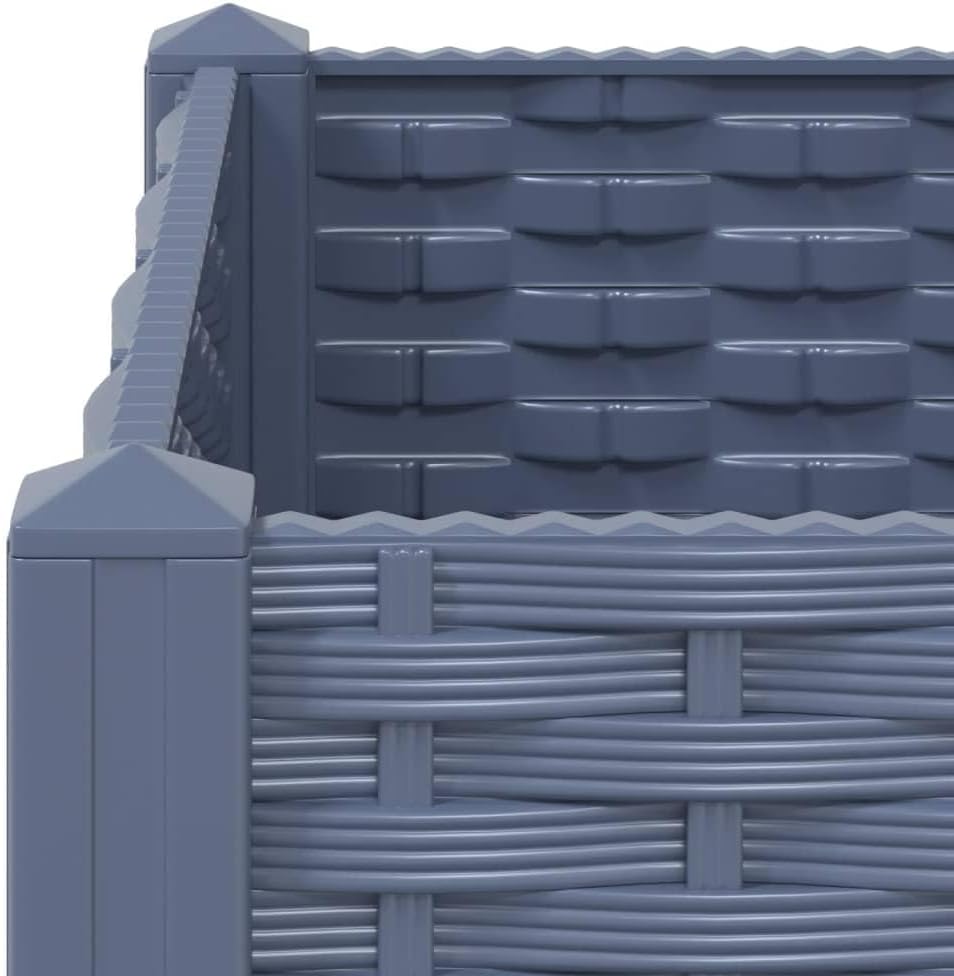 This raised bed would be an excellent choice for DIY enthusiasts to decorate their gardens, balconies or patios.This planter is made of polypropylene, making it sturdy, hard-wearing and suitable for daily outdoor use. The garden pot is deep and wide enough to hold a large amount of soil and provides ample space for your plants, vegetables, herbs and flowers. Create a lovely backdrop for your plants with this elegant planting bed!Color: Blue grayMaterial: PP (polypropylene)Dimensions: 31.5" x 15.7" x 9.1" (L x W x H)Assembly required: Yes