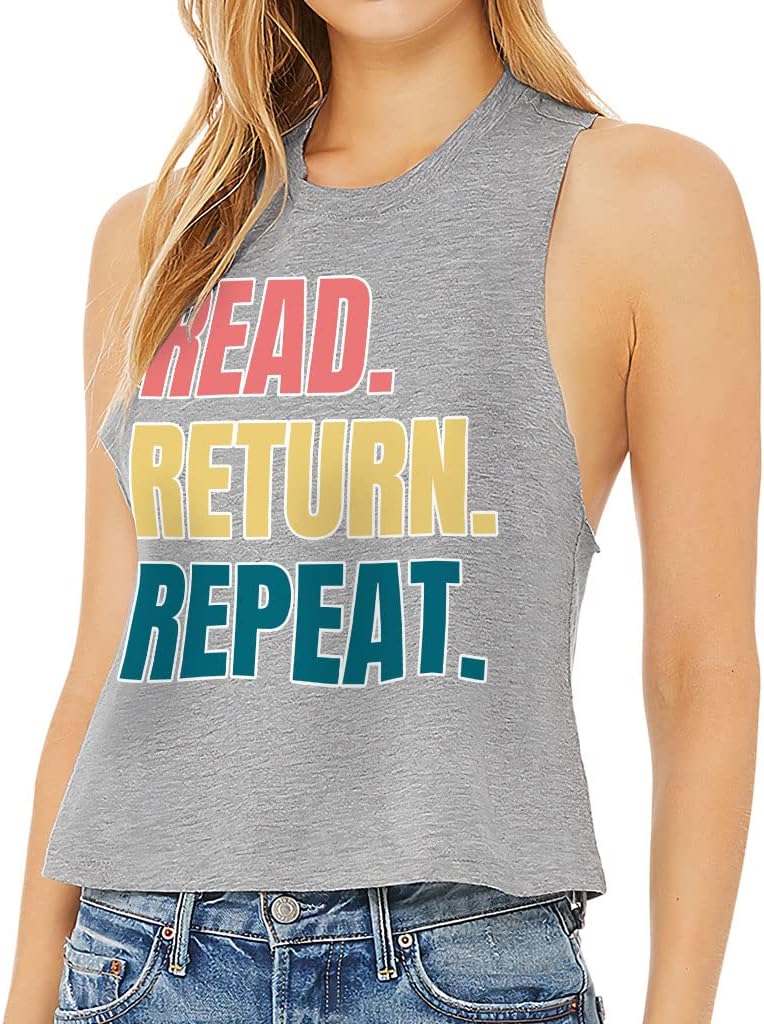 Cute and flattering Read Return Repeat Racerback Cropped Tank is suitable for most indoor or outdoor activities, such as gym, yoga, running, hiking, beach or relaxing around the house. Pair Cute Design Women's Tank with your favorite sports bras, especially strappy ones, and high-waisted leggings, then you will enjoy cool and comfortable exercise throughout the summer.
