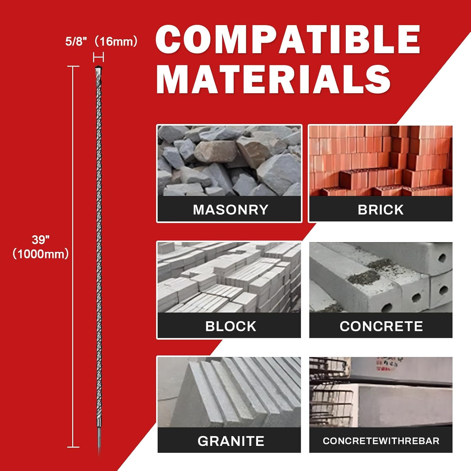 | Included Components | 5/8"x 39" Concrete Masonry Drill Bits |