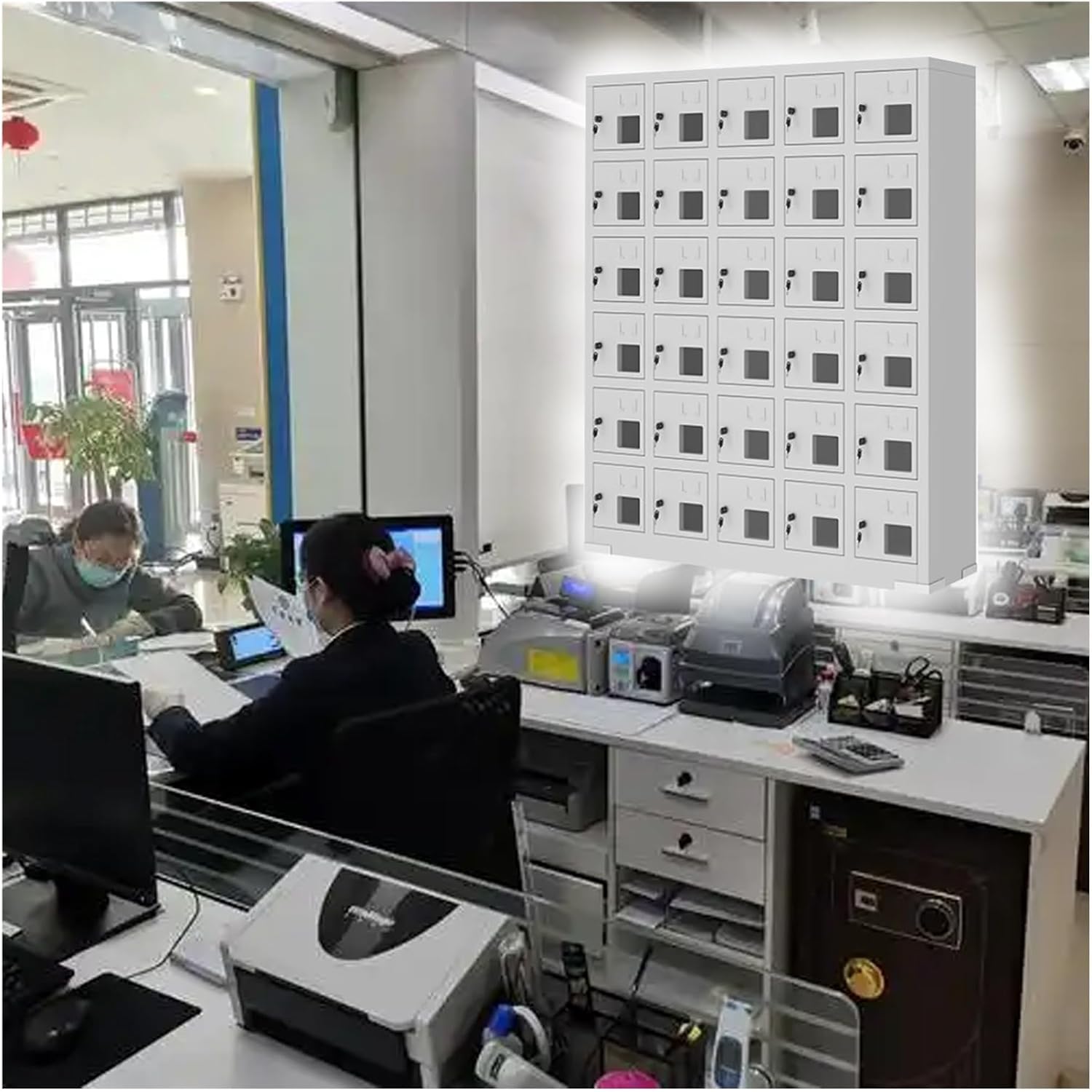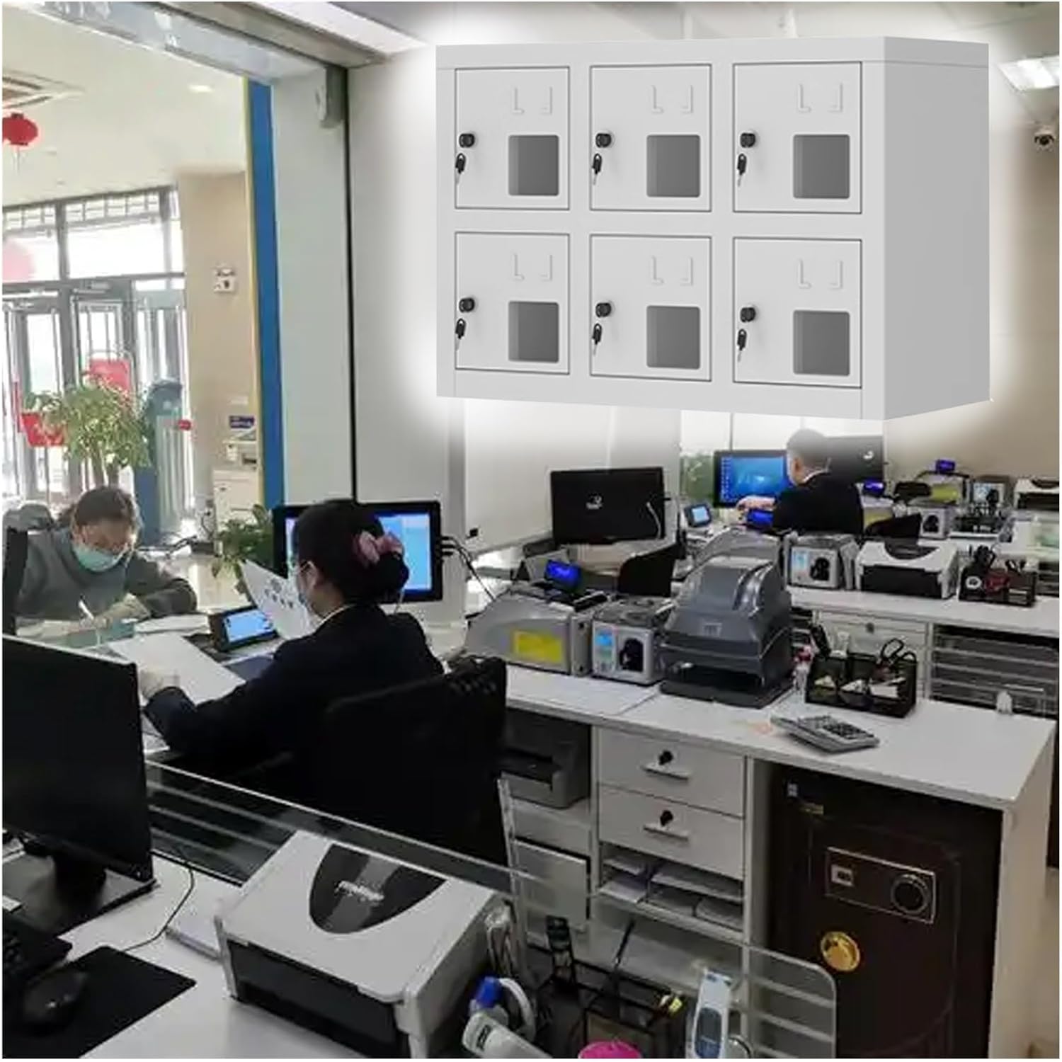 Freestanding Metal Phone Safe Deposit Organizer Box:Are you concerned about misplacing your cell phone at the gym? Do you worry about students getting distracted by their devices in class? Or perhaps you're looking for a secure way to store your phone while attending a seminar or taking an exam? Our cell phone lockers are the perfect solution for you! Designed to centralize and securely manage your cell phone, our lockers enhance your organization and help improve your productivity in various settings. Whether you're in a busy classroom, a fitness center, or a professional environment, our lockers provide peace of mind by keeping your devices safe and accessible. **Specifications:** - **Material:** Durable Steel - **Width:** 22.5 cm (8.9 in) - **Type:** Floor Standing - **Shape:** Rectangular - **Assembly:** No assembly required **Available Sizes:** - **2 Layers:** Capacity of 6 phones, Length: 53 cm (20.9 in), Height: 37 cm (14.6 in) - **3 Layers:** Capacity of 9 phones, Length: 53 cm (20.9 in), Height: 54 cm (21.3 in) - **3 Layers:** Capacity of 12 phones, Length: 72.5 cm (28.5 in), Height: 60 cm (23.6 in) - **5 Layers:** Capacity of 15 phones, Length: 53 cm (20.9 in), Height: 88 cm (34.6 in) - **4 Layers:** Capacity of 20 phones, Length: 80 cm (31.5 in), Height: 71 cm (28 in) - **6 Layers:** Capacity of 30 phones, Length: 80 cm (31.5 in), Height: 105 cm (41.3 in) **Features:** 1. Constructed from thickened steel for durability and ease of maintenance. 2. Transparent windows allow for easy monitoring of stored items. 3. Accommodates various cell phone models. 4. Versatile enough to store pens, scissors, remote controls, and cards. 5. Equipped with a secure lock to prevent loss. 6. Each compartment includes card slots for business cards, making organization simple. **Package Includes:** - 1 x Cell Phone Storage Locker **Note:** - Minor size variations of 1-3 cm may occur due to different production batches. - Color discrepancies may arise