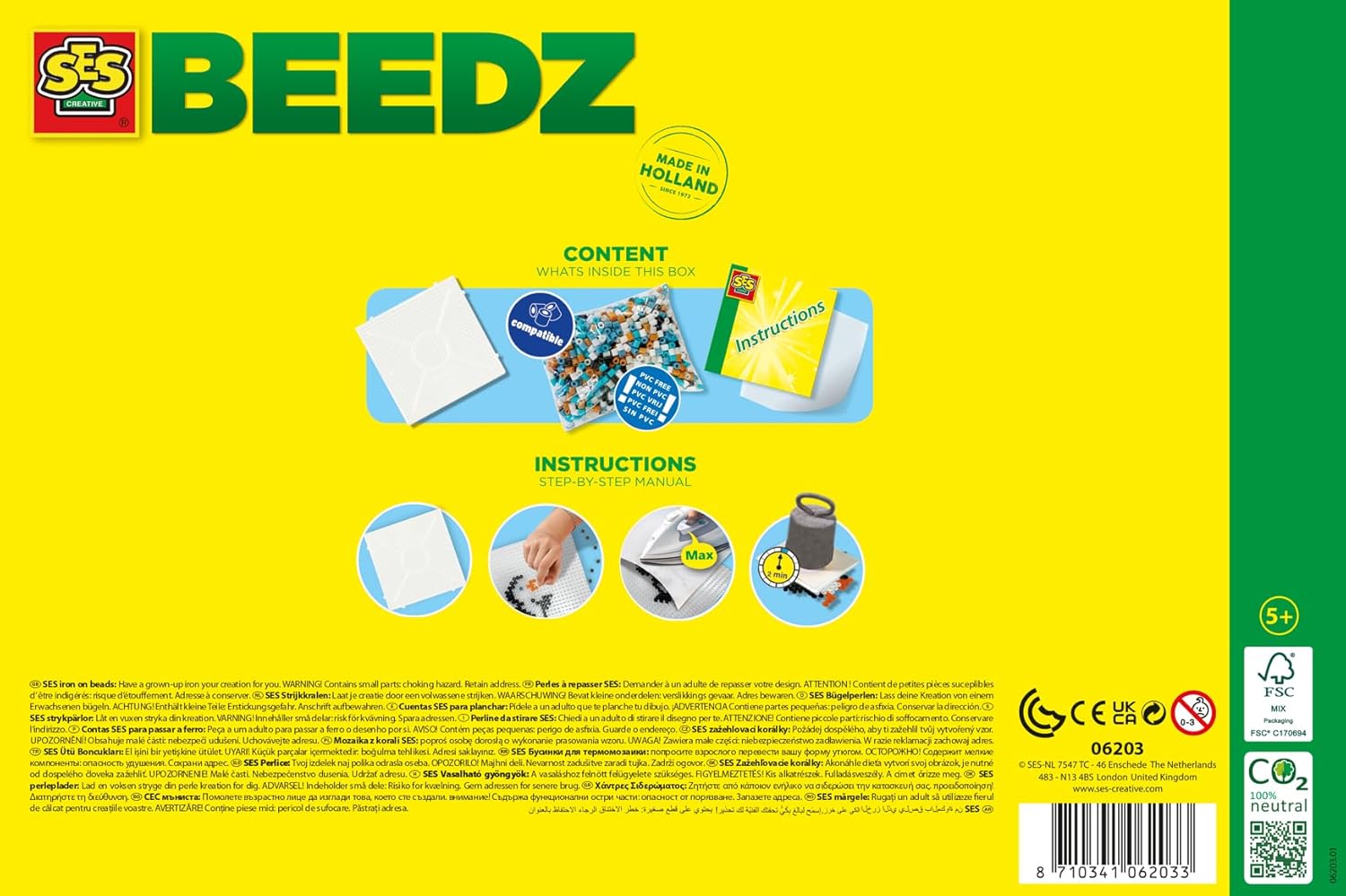 Brrr... these animals live in cold climates. And with this iron-on-beads set, you can make them all! Build an igloo, a polar bear or curious penguins, or dive into the ocean with the walrus and killer whale. With the Beedz from SES Creative, you can easily make all these Arctic animals. This set contains a square pegboard, 2100 iron on beads, ironing paper and beautiful examples.
