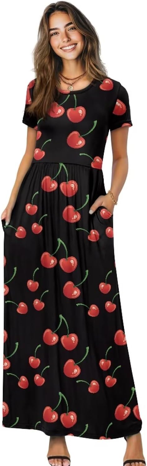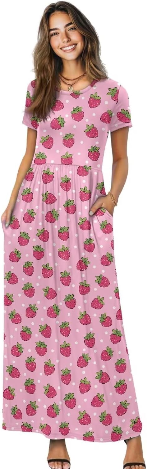 Psaytomey Women's Casual Short Sleeve Crewneck Maxi Dress Material: The fabric is soft and stretchy, suitable for spring, autumn and winter, creating an elegant and fashionable look Features: maxi dress for women summer, maxi dress for women casual, women's trendy dresses, women's short sleeve dresses, beach dress, cocktail dress for women, long dress for women The crew neck, short sleeves and flowing hem make it look casual and comfortable, perfect with sandals or heels Occasion: It would be a good choice to give this special printed women's short-sleeved long dress to your wife, girlfriend, mother, or daughter on her birthday or Mother's Day. They will love it Notes: Can be washed by hand, do not soak for a long time, do not bleach, and the temperature of the cleaning solution should not exceed 45ºC Due to different measurement methods, errors within 1-2cm are normal Due to production batches, machinery and equipment and other objective factors, it is difficult to avoid or there will be a small color difference, location and size and other errors, such as the above problems are normal phenomenon