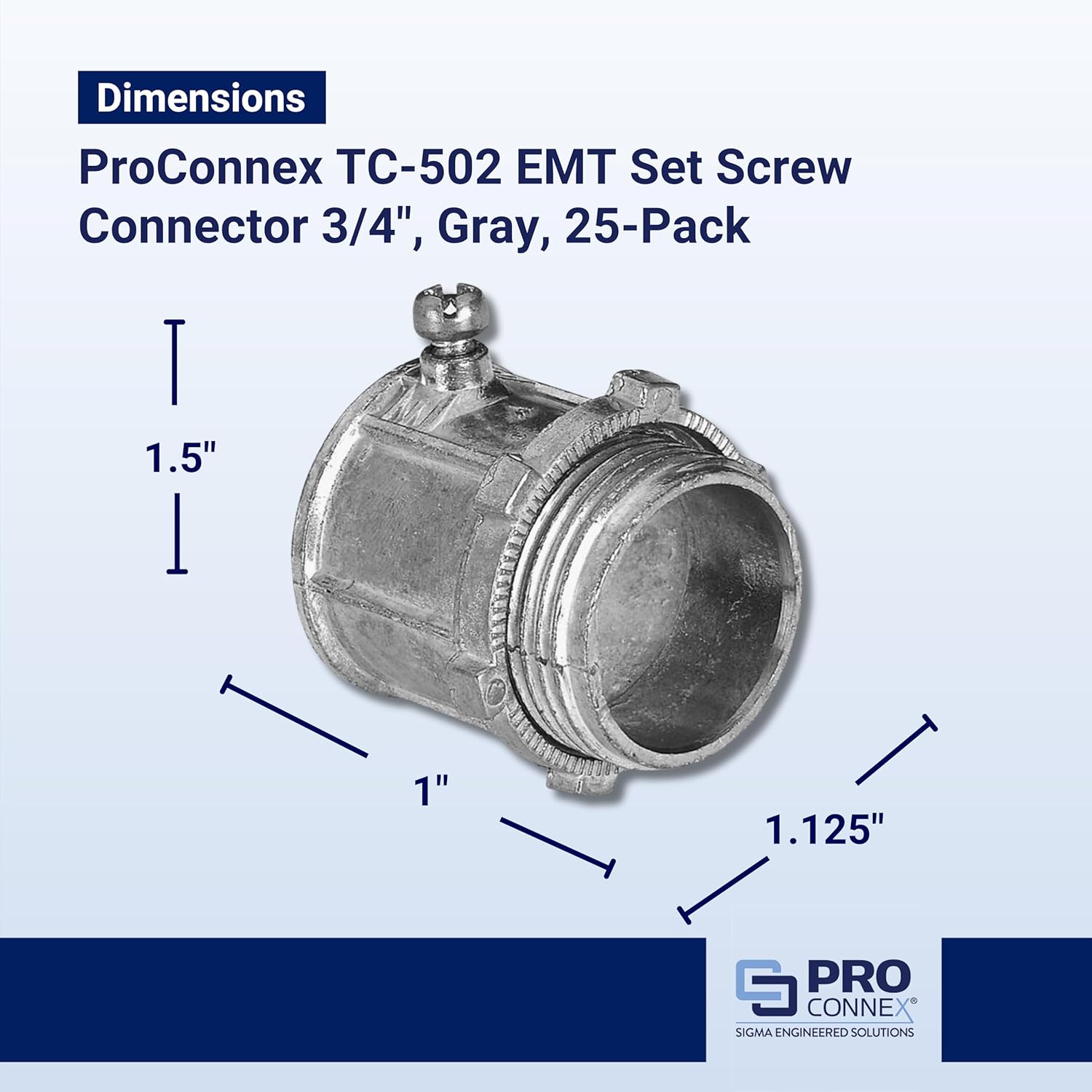 | Item Type Name | Sigma Engineered Solutions Sigma Electric ProConnex TC-502 EMT Set Screw Connector 3/4-Inch, 25-Pack, Gray, 25 Count |