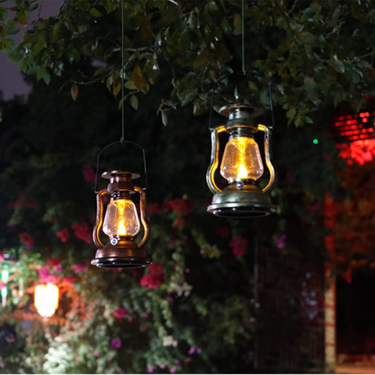 💯💯FEATURE:🔸Solar LanternThe lantern will automatically be fully charged in about 5-6 hours during the day and it will automaticlly lighting for 8 to 10 hours at night.🔸Water ProofIP44 waterproof.The solar lantern is suitable for all kinds weather such as raining or snowing🔸Two ModesFlickering flamess mode and normal light modeTurn on the switch, turn once for the flame effect, turn twice for normal light effect.🔸Realistic flameMaterial: plastic and glassP44 waterproof, outdoor lanternproduct measurement:6.6*4.2*8.8inches🎁🎁Package included: 1/2 Pack Solar Lantern Outdoor❤️❤️WARM TIPS:1.Before first use, please turn on the switch and charge the hanging solar lantern for 1 sunny days.2. Please make sure the solar panel can get direct sunlight without any shelter or glass.