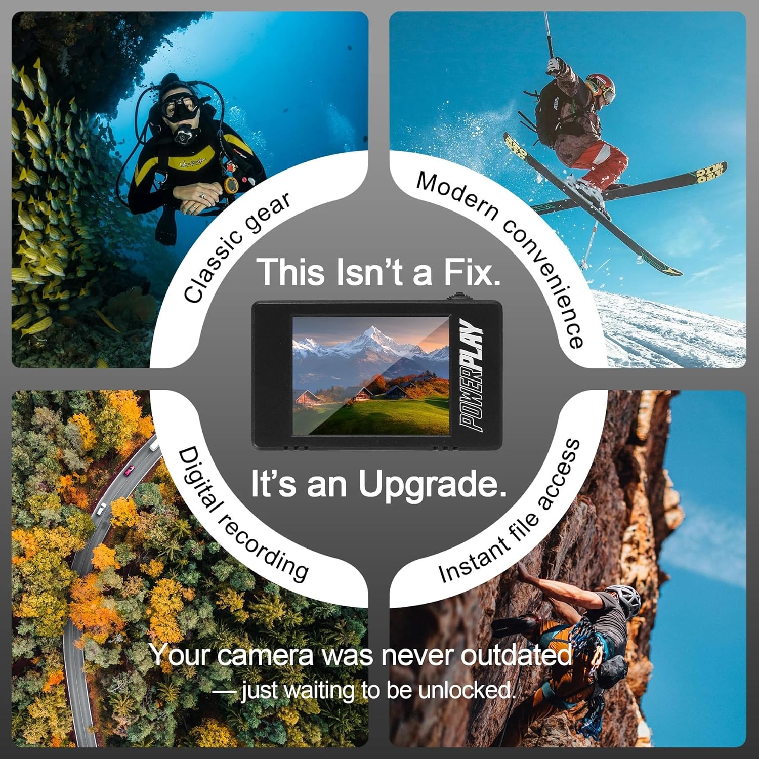 PRODUCT SPECIFICATIONS: Interface USB: TYPE-C AV-IN:Audio L, Audio R, CVBS TF Card: MAX:512GB, SD or SDHC DC-OUT: 7.4V/1A Screen:2.4 inch, 480(RGB) * 640, Luminance 600Cd/m2 Video Input: CVBS (PAL, NTSC 1.0Vp-p +-10%) Record a Video:CVBS,60 fps Packaging: POWERPLAY DVR, Mounting Kit, DC/AV Cables.