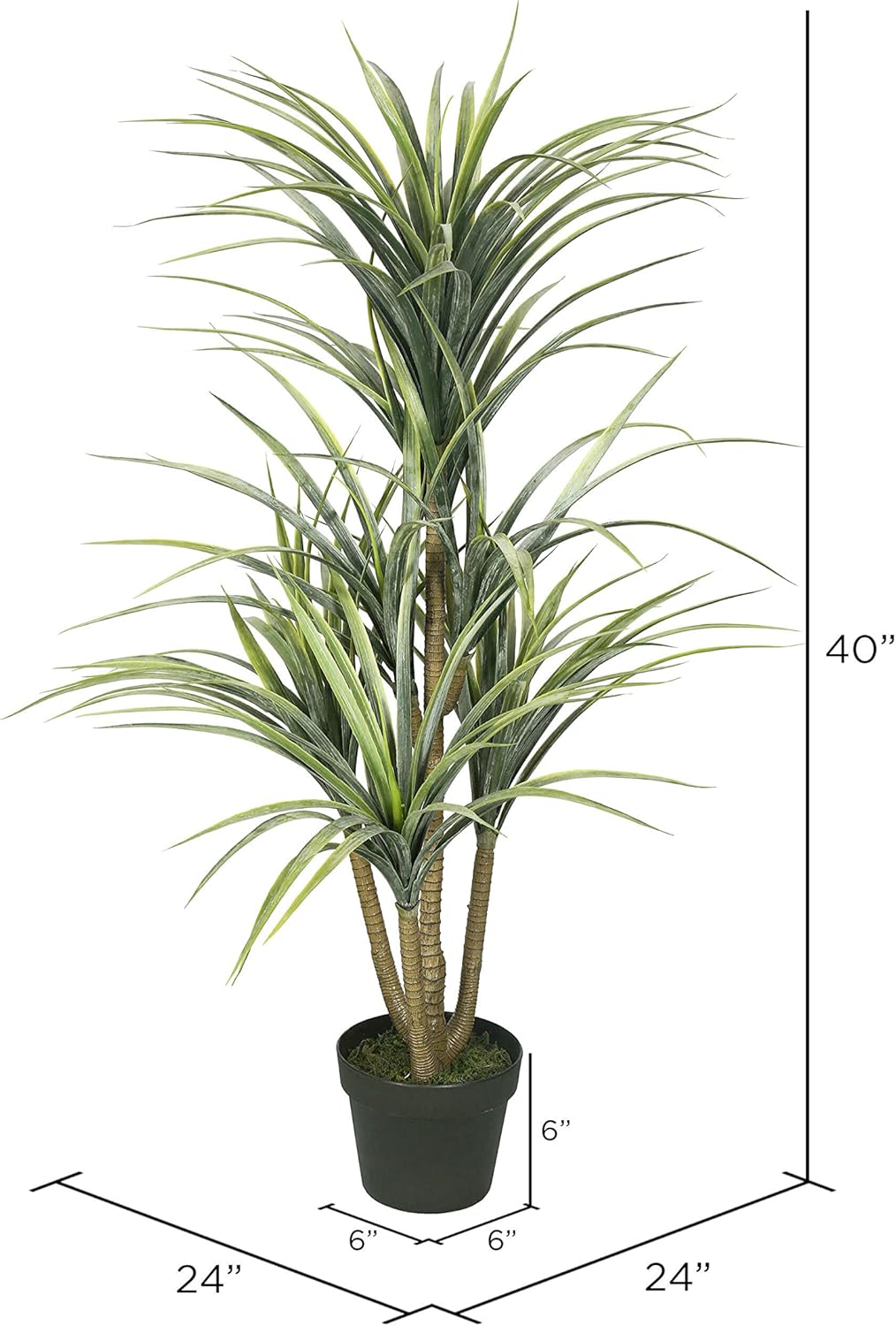 Vickerman 40" Artificial Green Yucca Tree in Black Planters Pot. This 40-inch Tall Potted Faux Yucca Tree from Vickerman from top to bottom measures 40"H x 24"L x 24"W. The size of thisTree makes it perfect to tie together any living space.With its realistic appearance and sturdy black planters pot, this faux tree will bring a touch of nature into your home. Perfect for indoor use, this maintenance-free large faux tree is easy to keep looking fresh with just a quick wipe of a dry cloth. Whether you're looking for a tall indoor tree or an artificial floor plant, this faux yucca tree is sure to add a touch of greenery to your home or office decor. This Yucca Tree features 6"L x 6"W x 5"H simple planters pot that can stand on its own or can be inserted into the decorative pot of your choice. Create the appearance of a live tree with highly detailed leaves and lush foliage. Vickerman has been an industry leader since 1940. Our expert designers focus on every detail to create artificial plants that look natural.
