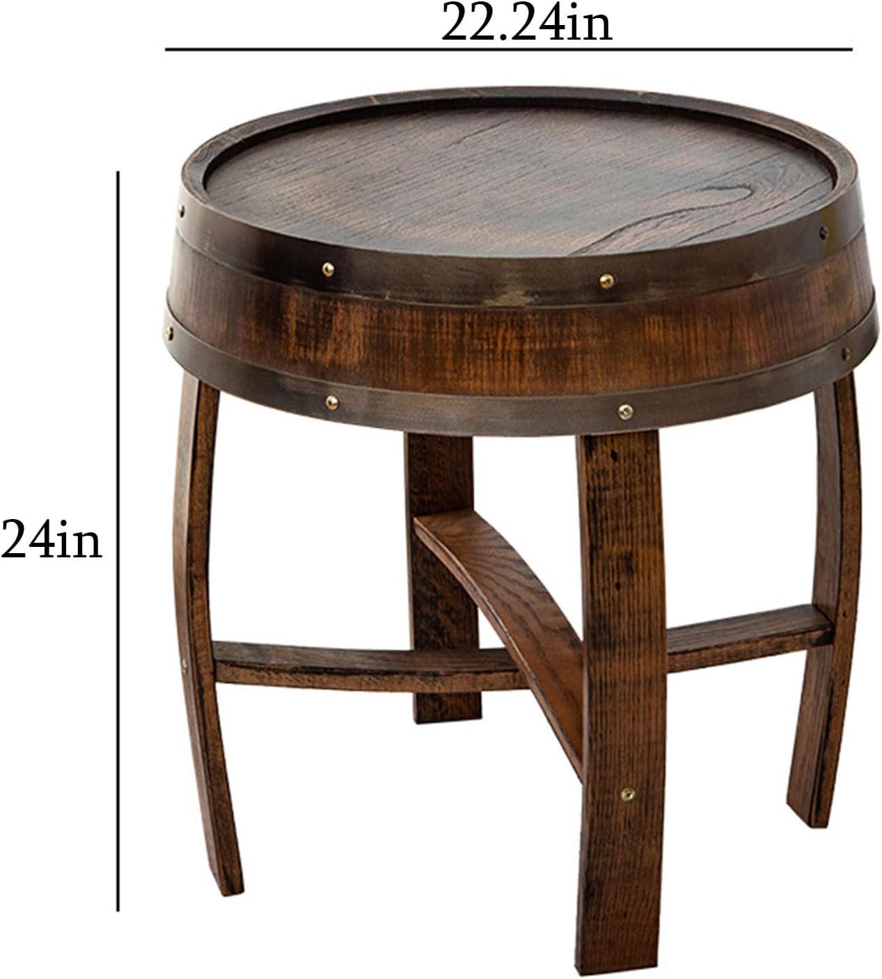 End tables are usually designed to be small and fit next to a sofa or bed without taking up too much space while providing enough surface space to place itemsFeatures:Whiskey Barrel Side Table is designed and made to match your interior décorSide tables are designed to be lightweight and easy to move aroundSpecifications:Material:WoodColor: Log ColorSize: Tabletop Diameter: 22.24 inTabletop Height: 24 inPackage Included:1 × Whiskey Barrel Table1 × Install Accessories