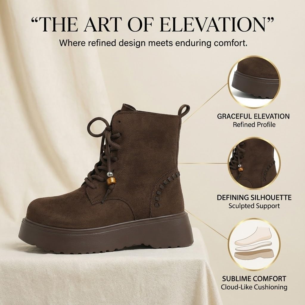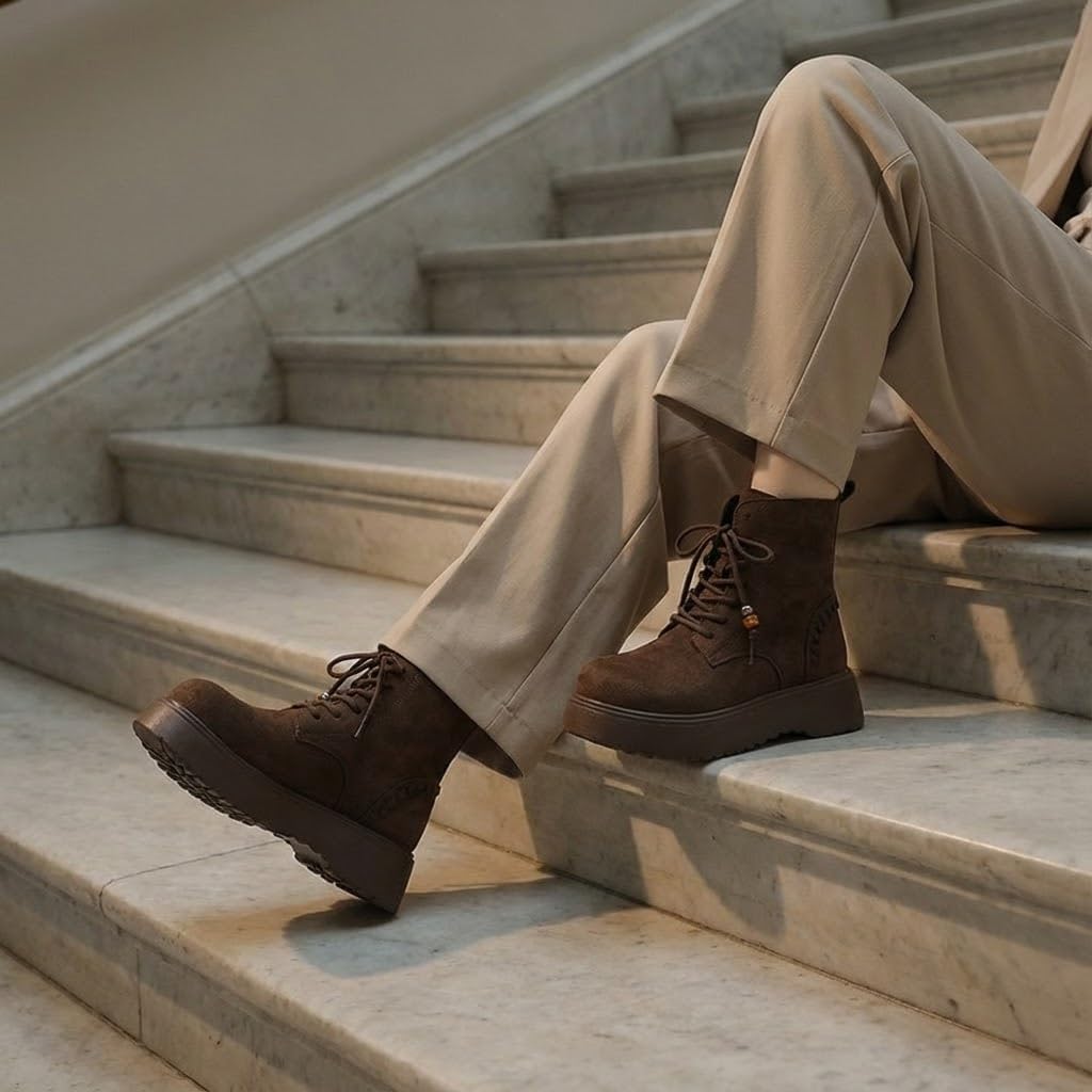 Step into the season with confidence and style in our Women's Platform Wedge Mid-Calf Boots. Designed to solve the common struggles of winter footwear, these boots combine fashion-forward aesthetics with practical functionality. While other boots leave you slipping on wet surfaces, our chunky wedge sole features a deep lug tread pattern for superior traction on autumn leaves and light snow. The 3-5cm mid-heel height offers the perfect balance, giving you a subtle lift without the foot fatigue associated with high heels. We've ditched the restrictive zippers for a classic front lace-up design, allowing you to fully adjust the fit around your calves—perfect for layering over thick socks or jeans. Finished with charming beaded details on the laces and a convenient heel tab for easy entry, these faux suede booties are your go-to choice for comfort and boho style.